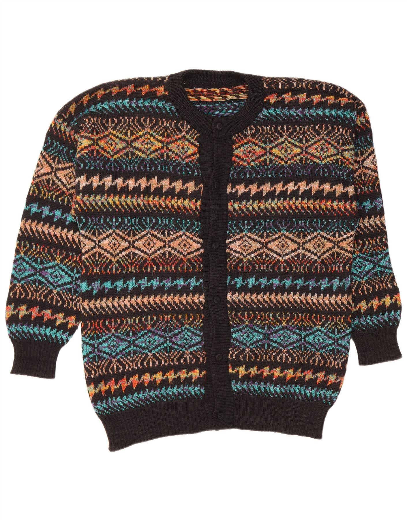 VINTAGE Herre Cardigan Sweater Stor Sort Geometrisk