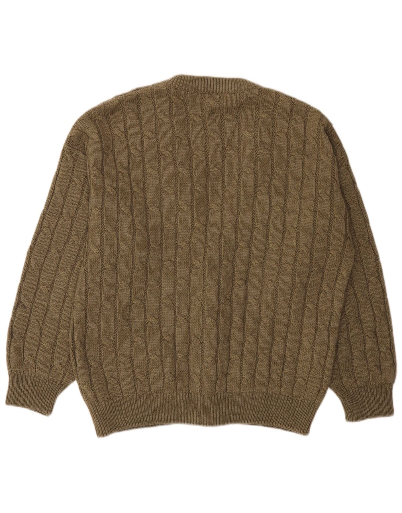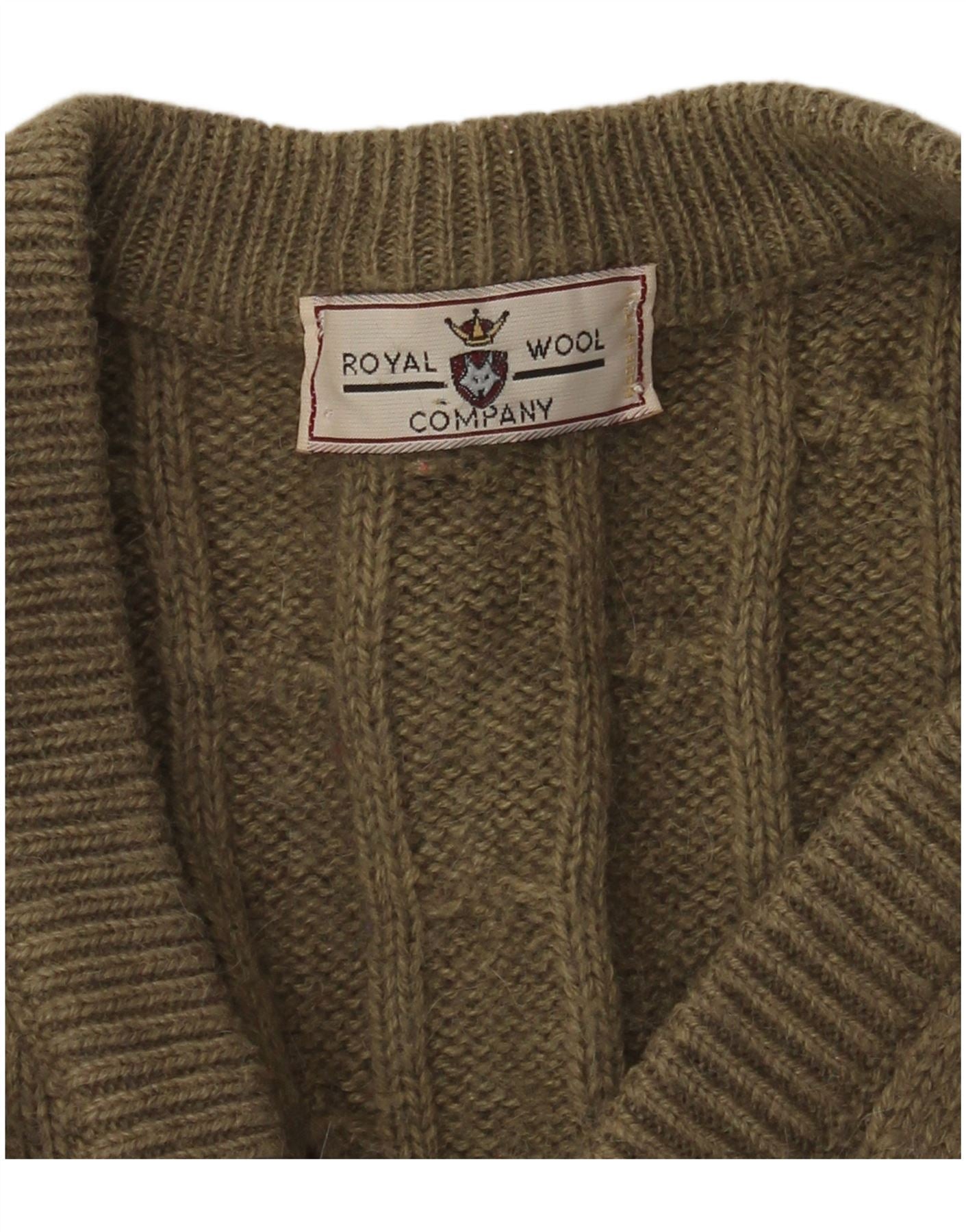 - AI beskrivelse: Denne vintage herre cardigan sweater er lavet af varm uldstrik i en rig kaki nuance. Den har en karakteristisk kabelstrik-tekstur. Den klassiske V-udskæring og knap foran giver tidløs appel. Lange ærmer afsluttes med behagelige manchetter. En normal pasform sikrer let at bære. Tonale knapper giver en raffineret accent. Praktiske frontlommer tilføjer funktionelle detaljer til designet.
