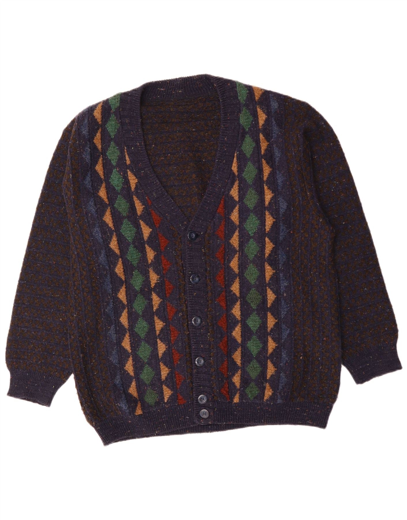 VINTAGE Herre cardigan sweater Large Navy Blue Argyle/Diamond Merino Wool