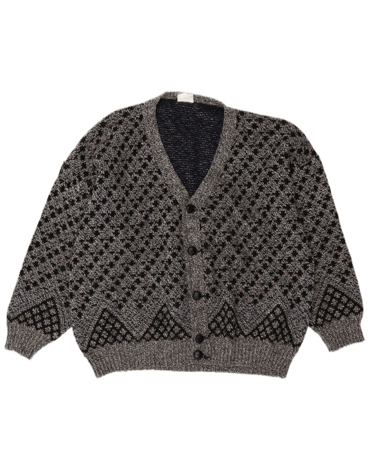 VINTAGE Herre cardigan sweater XL Grå geometrisk uld