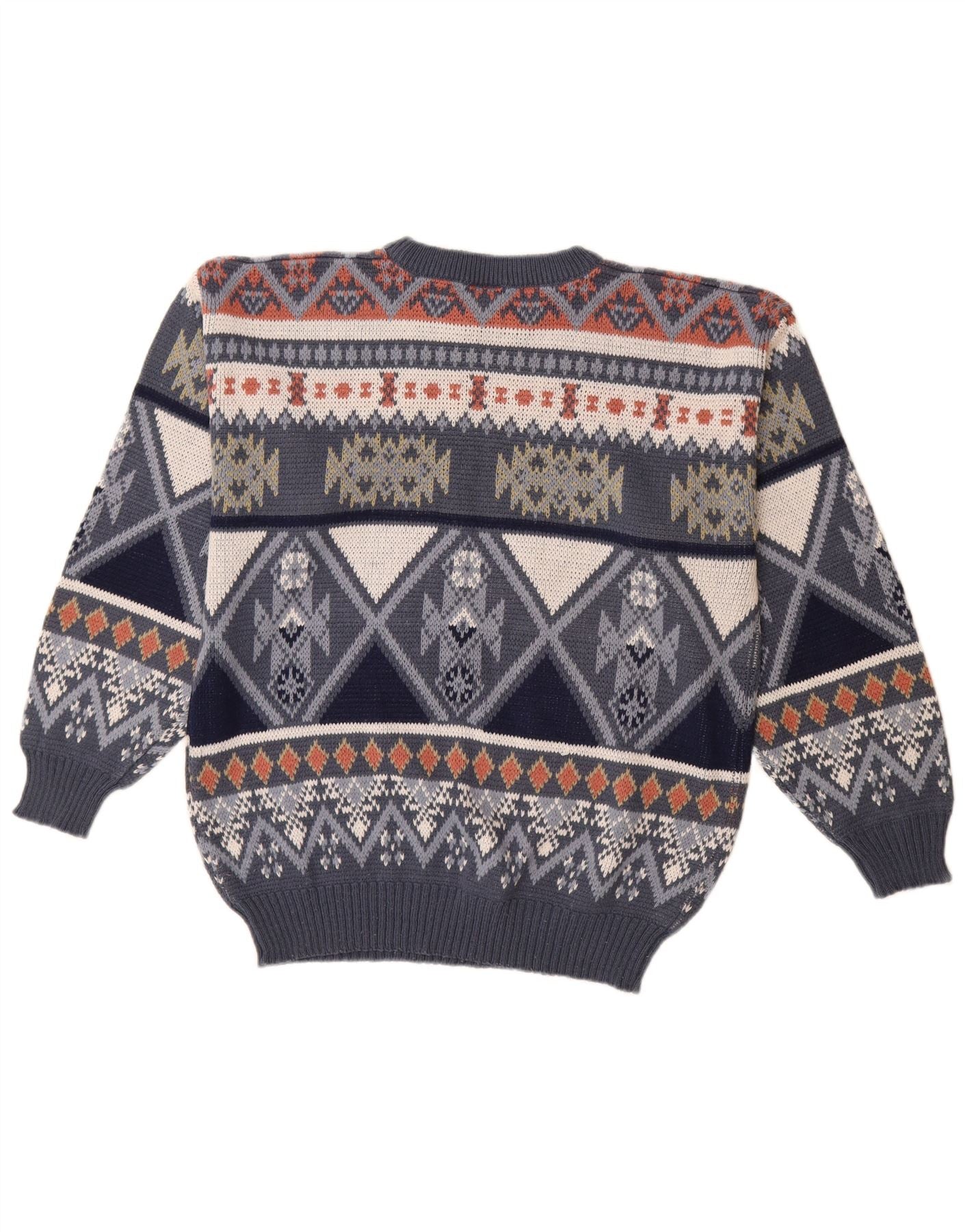 VINTAGE Herre sweater med rund hals IT 48/50 Medium Navy Blue Fair Isle
