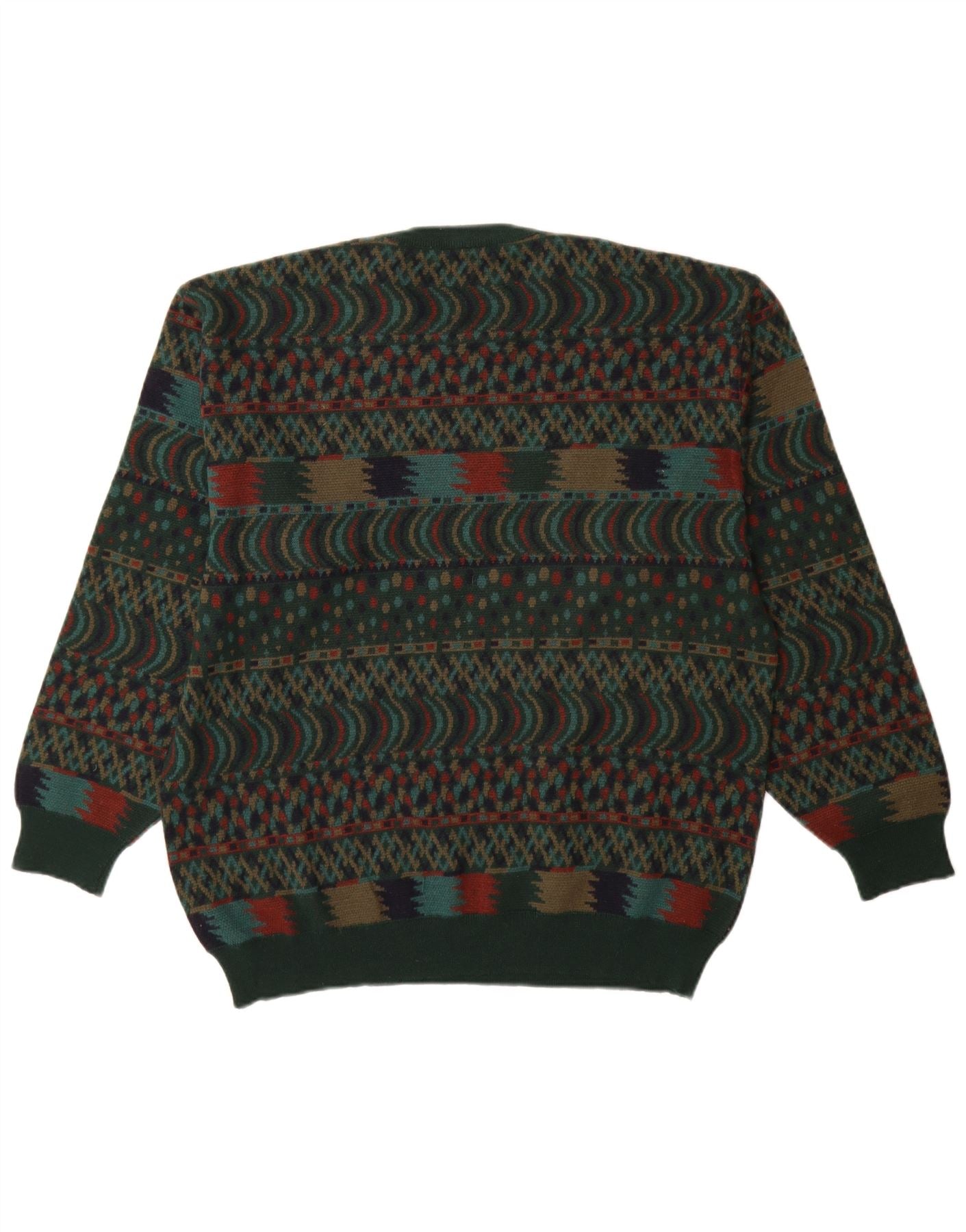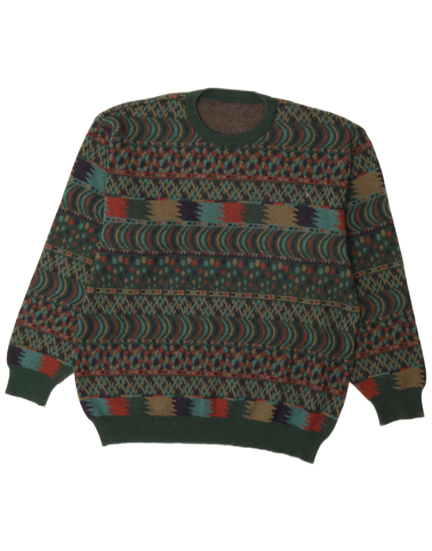 VINTAGE Herre Crew Neck sweater IT 54 XL Green Fair Isle Wool