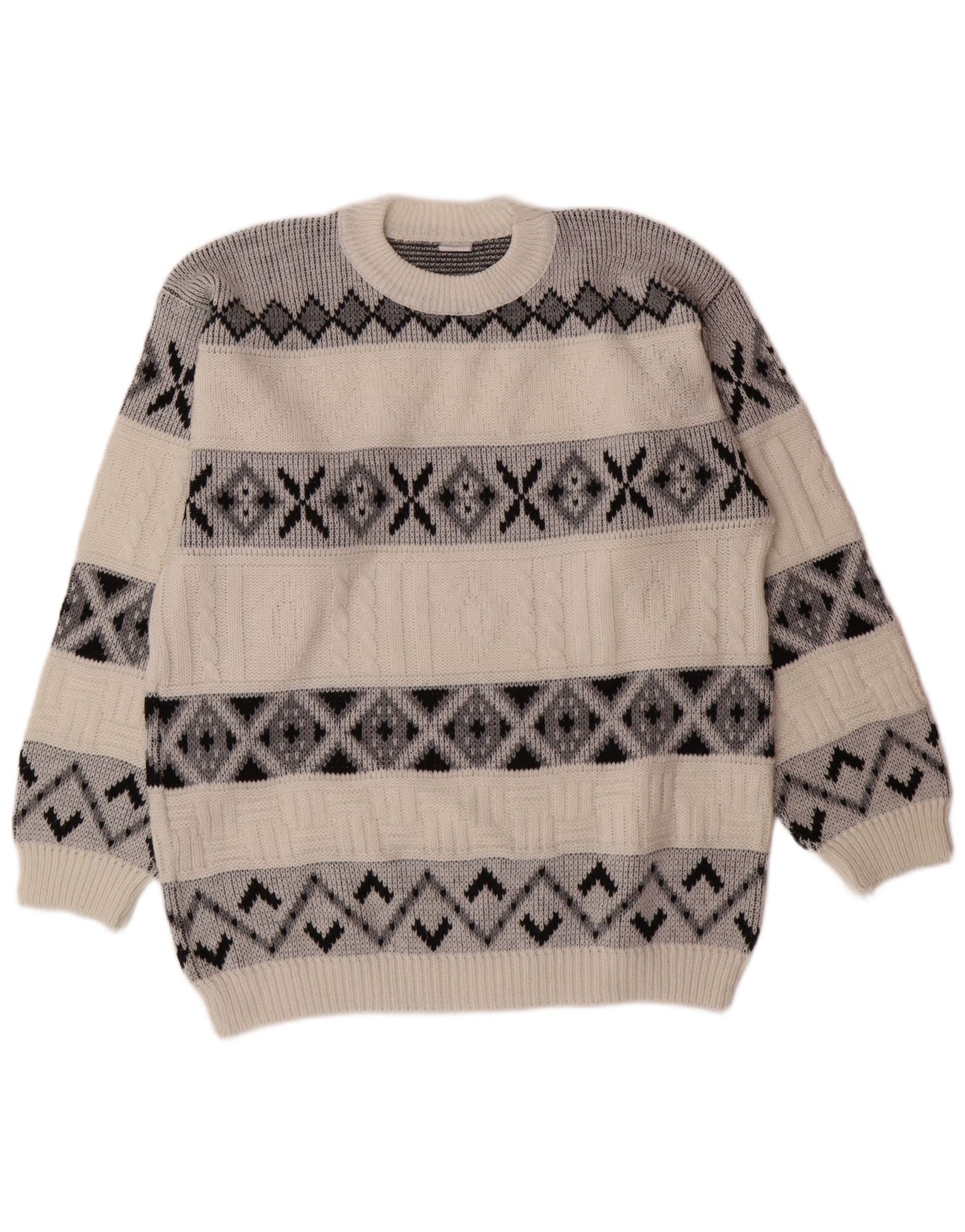 VINTAGE Herre Crew Neck sweater Large White Fair Isle