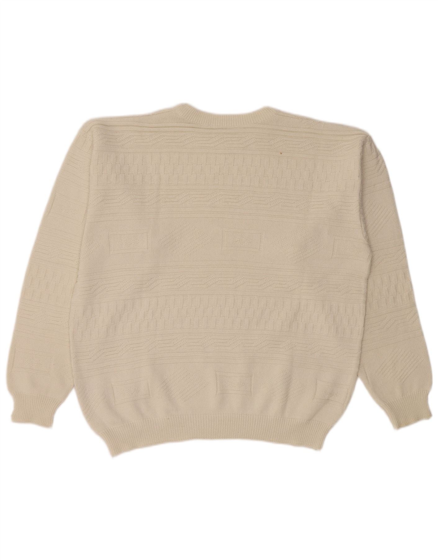 VINTAGE Herre sweater med rund hals, stor hvid geometrisk bomuld
