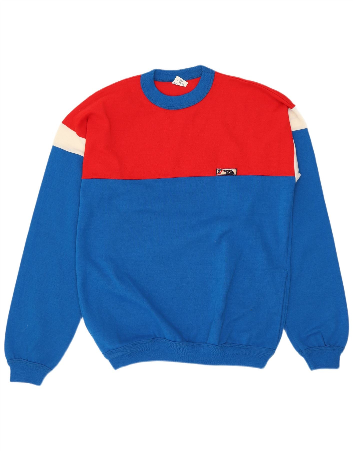 VINTAGE Herre Crew Neck sweater Medium Blue Colourblock Akryl