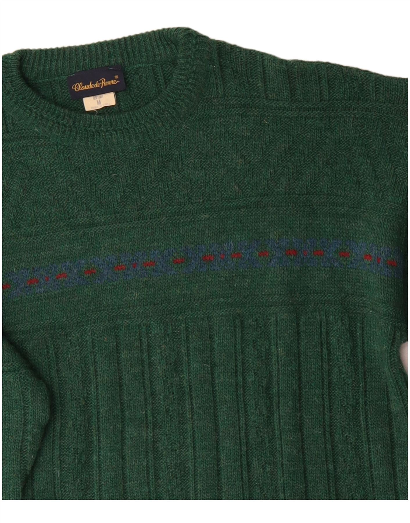 Vintage sweater med rund hals til mænd Medium Green Fair Isle Wool