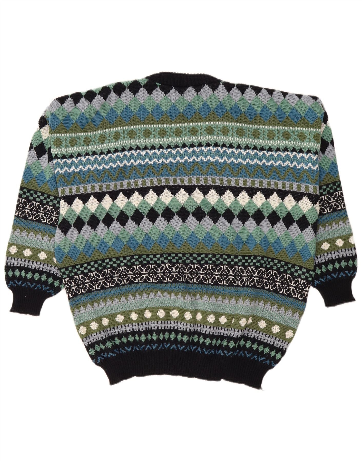 VINTAGE Herre trøje med rund hals, medium flerfarvet geometrisk