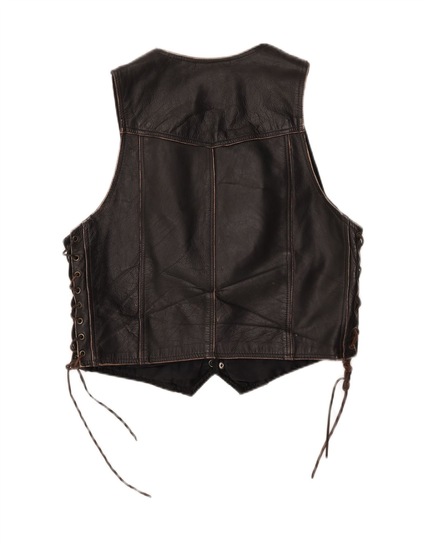 Vintage Herre Crop Læder Gilet IT 52 XL sort læder
