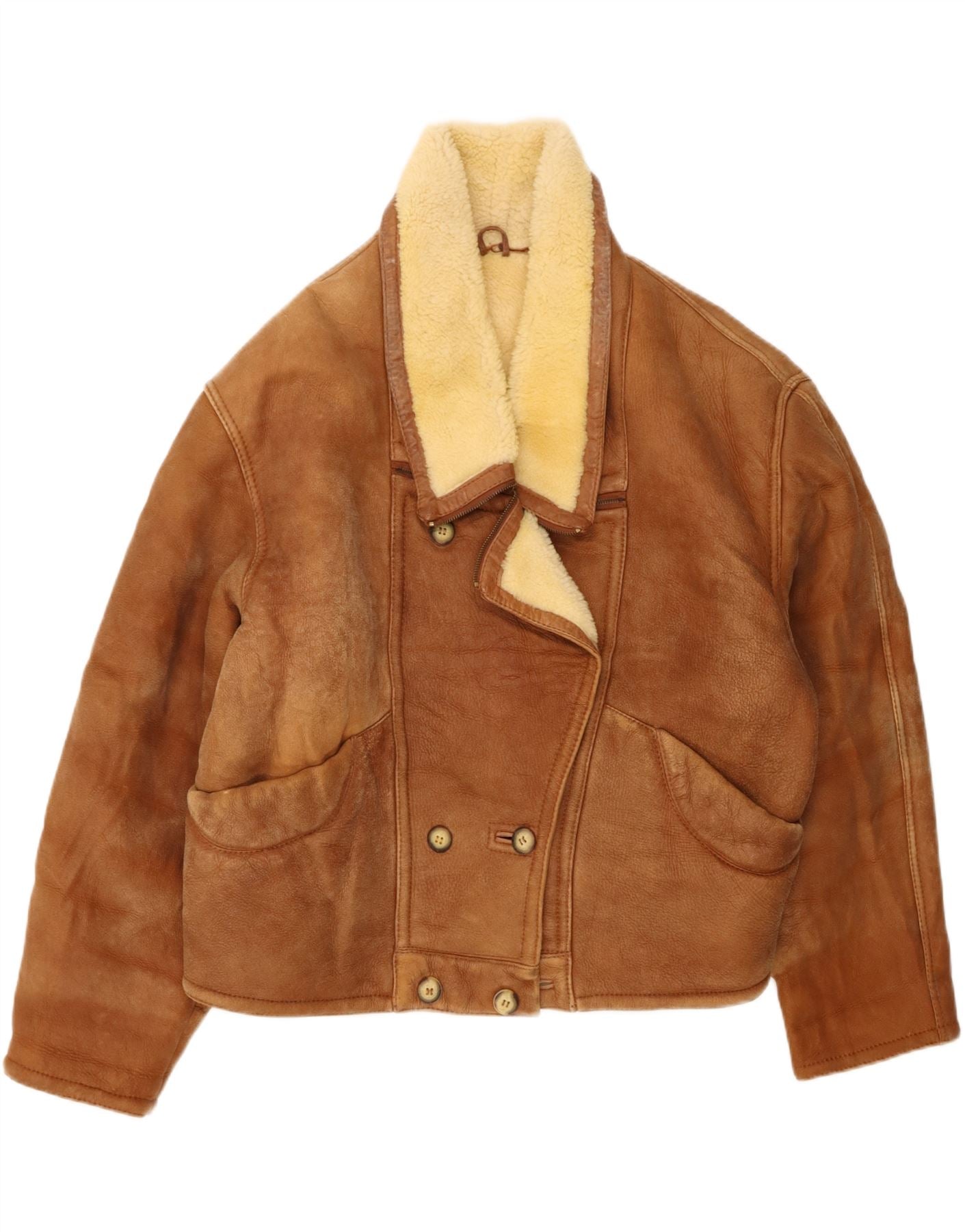 Vintage Herre Double Breasted Shearling Jacket UK 20 2XL Brown Shearling