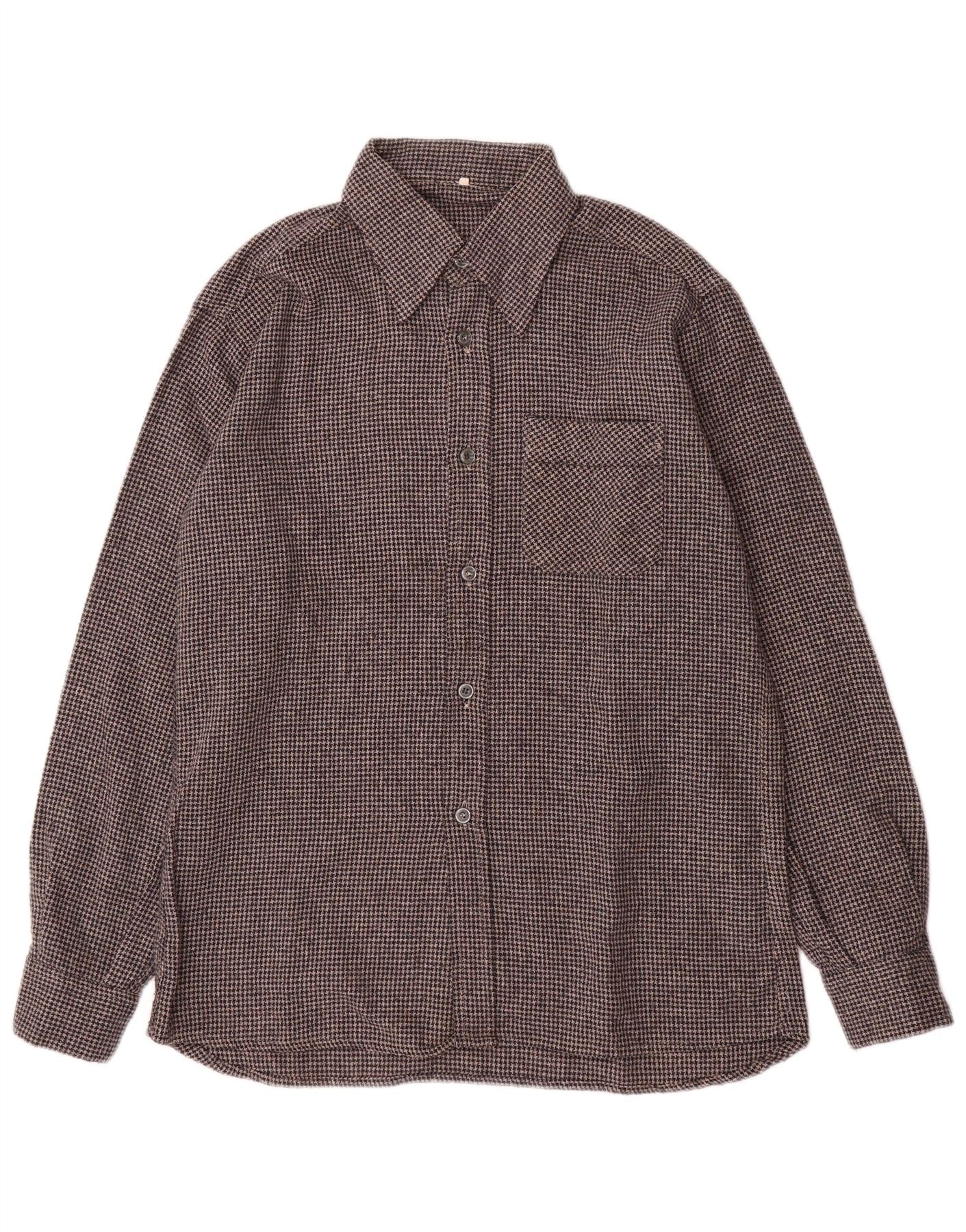 VINTAGE Flanelskjorte til mænd Størrelse 40 Medium Grå Houndstooth