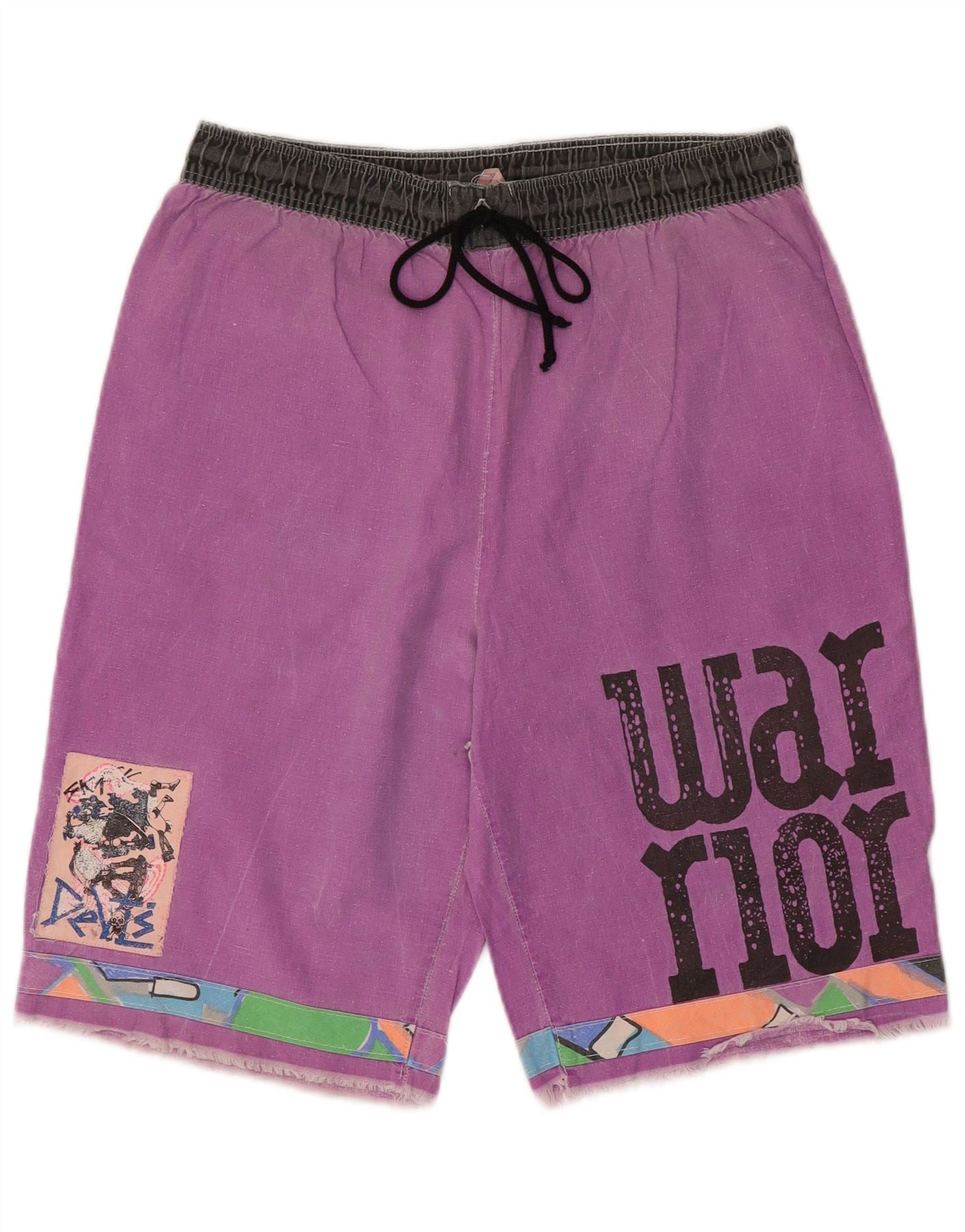 Vintage Herre grafiske Casual Shorts W32 Medium Lilla Bomuld