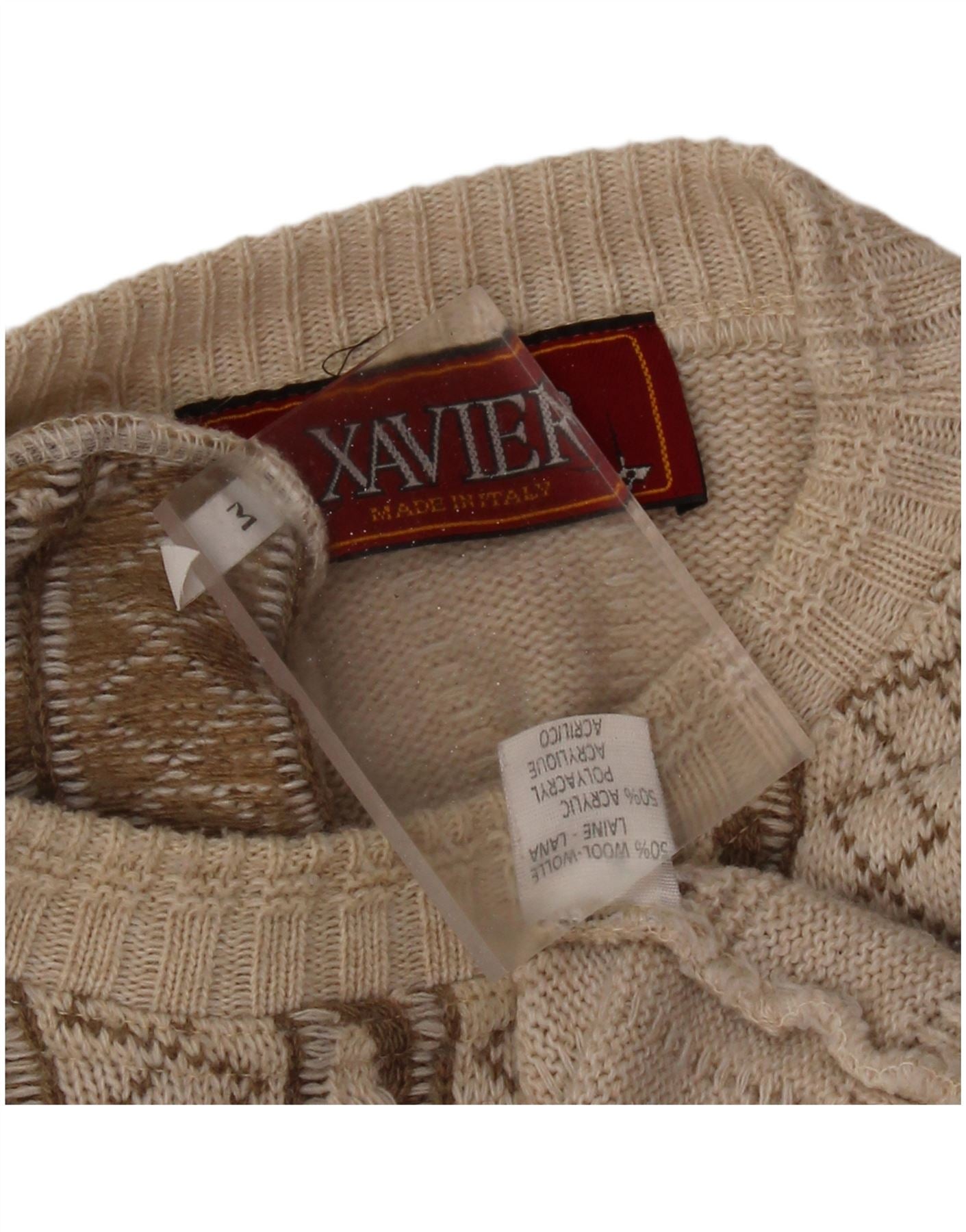 VINTAGE Herre grafisk rund hals sweater mellembeige stribet uld