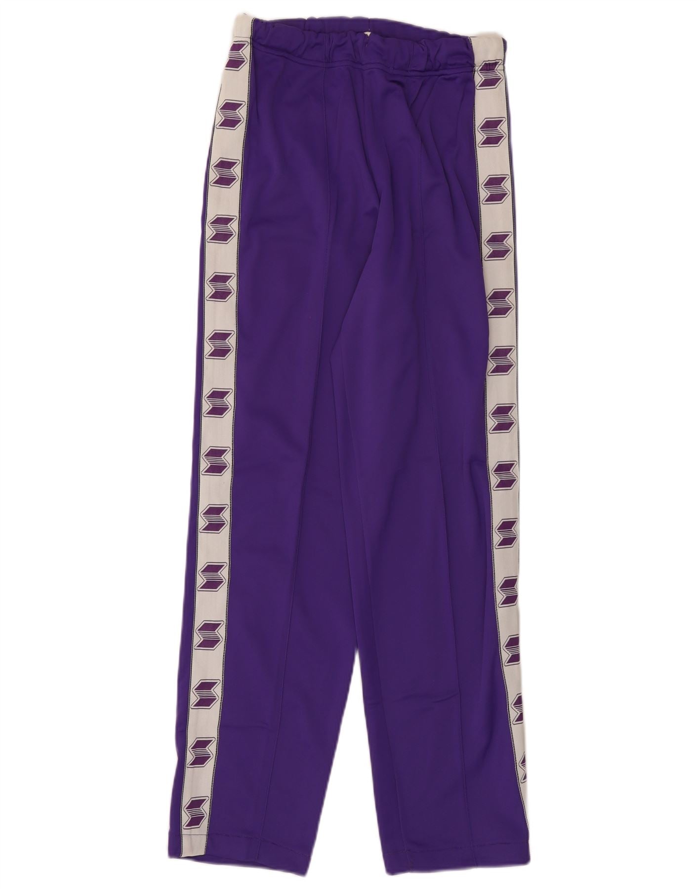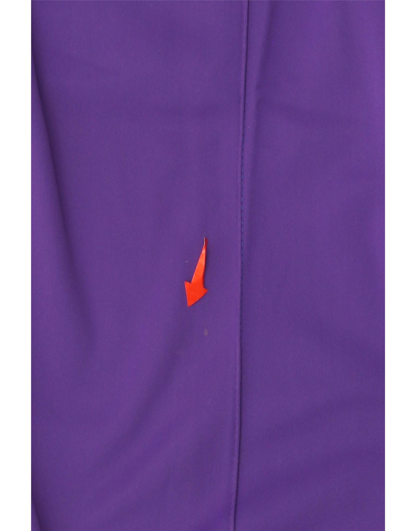 • AI beskrivelse: Denne vintage træningsdragt til kvinder er lavet af et glat blandet stof af polyester og triacetat. Den har et slående colourblock-design i lilla og hvid. Jakken har høj hals og fuld lynlås. Lange ærmer afsluttes med ribmanchetter. To frontlommer tilføjer funktionalitet. Bukserne har elastik i taljen for komfort. Begge dele har grafisk logotape-detaljer langs siderne. Dette sæt med normal pasform tilbyder en distinkt retrostil, perfekt til atletik eller fritidstøj.