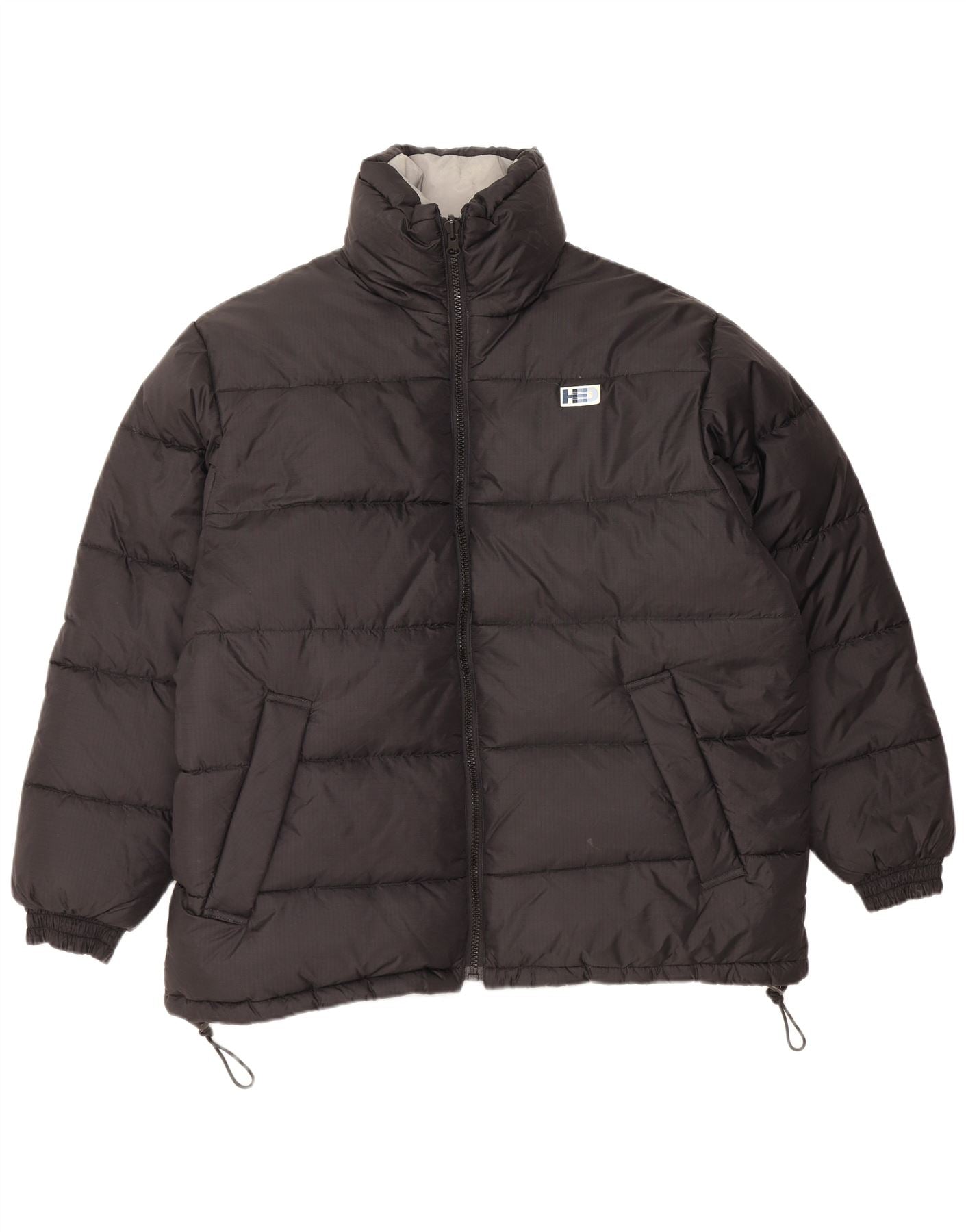 Vintage Herre grafisk Loose Fit polstret jakke UK 38 Medium Sort Nylon