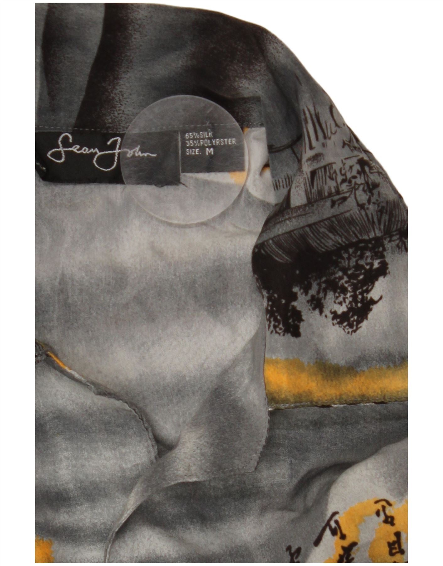 VINTAGE Herre grafisk kortærmet skjorte mellemgrå silke