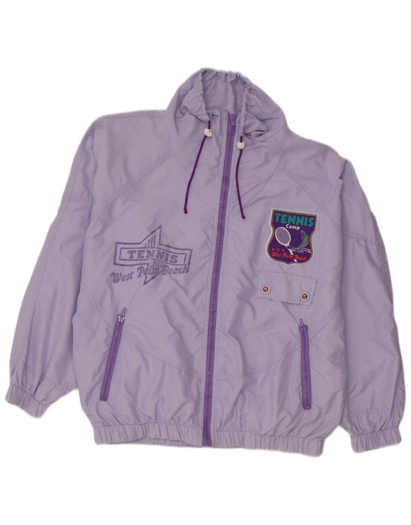 VINTAGE Herre grafisk træningsdragt Topjakke Medium Lilla Polyamid