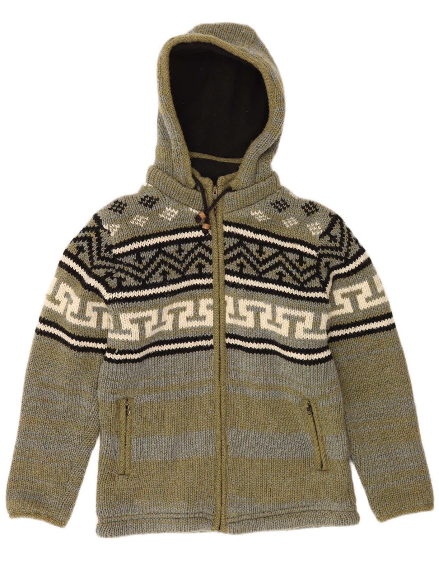 VINTAGE Herre hætte cardigan sweater Medium Khaki Fair Isle Wool