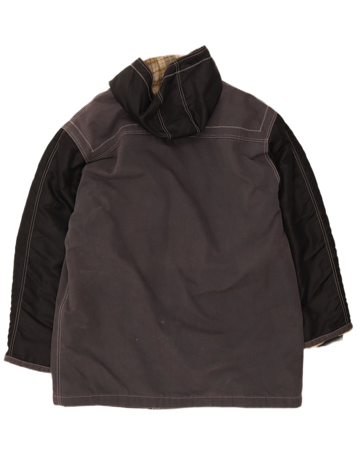 VINTAGE Herre Hooded Duffel Coat UK 42 XL Grå Colourblock Bomuld