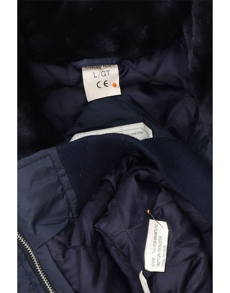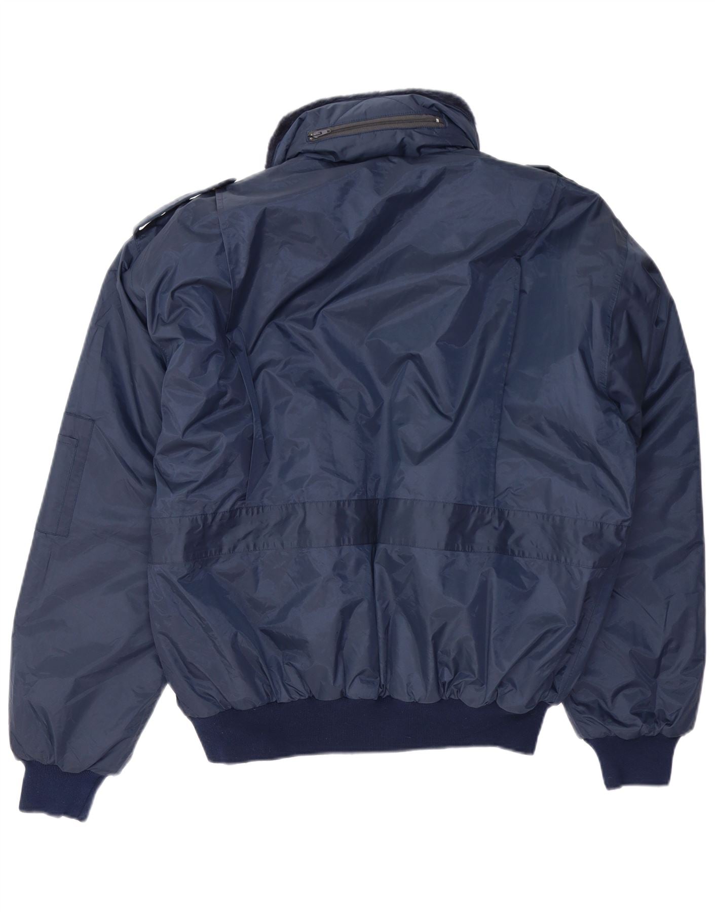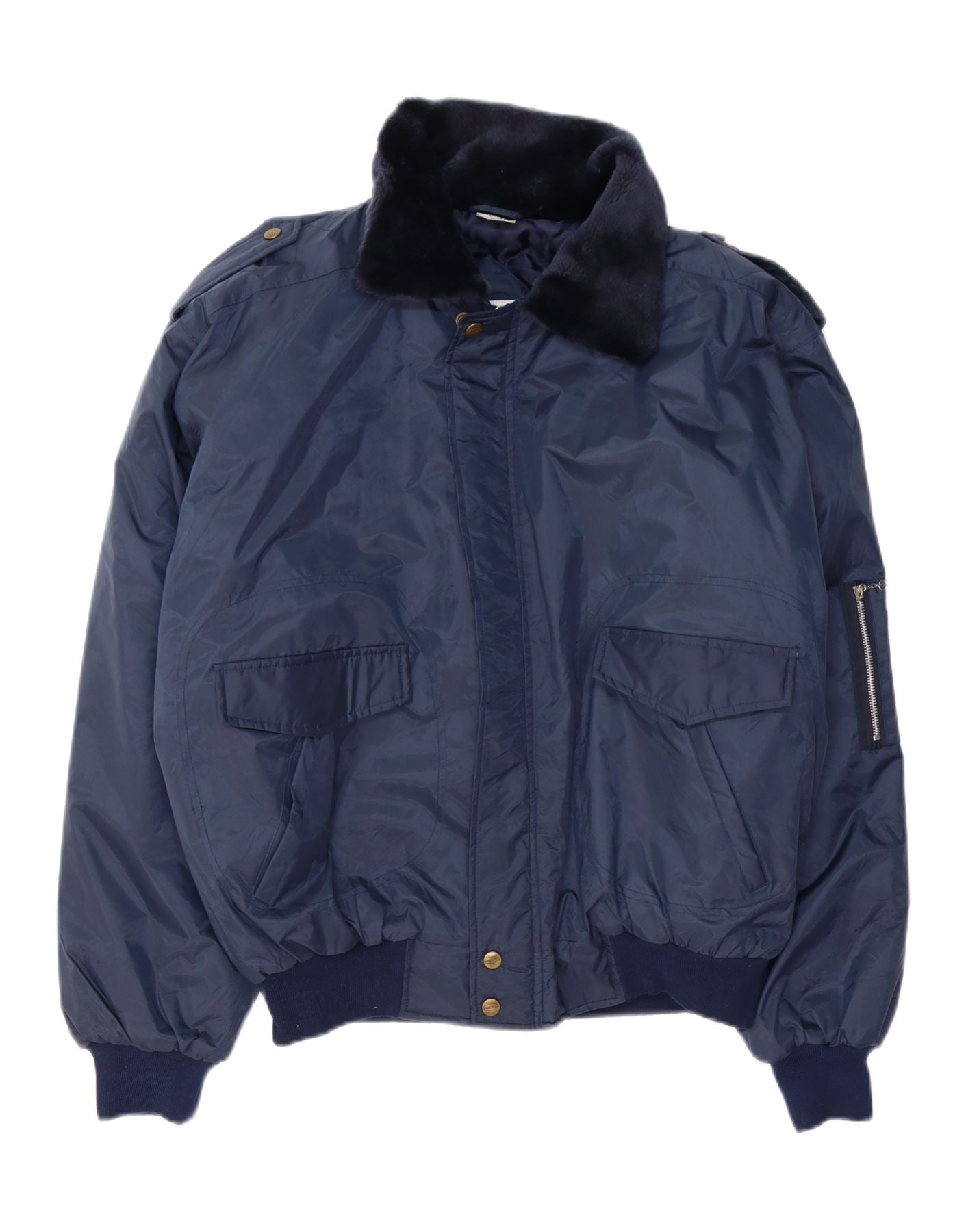 VINTAGE Military Bomber Jacket med hætte til mænd UK 40 Stor marineblå nylon