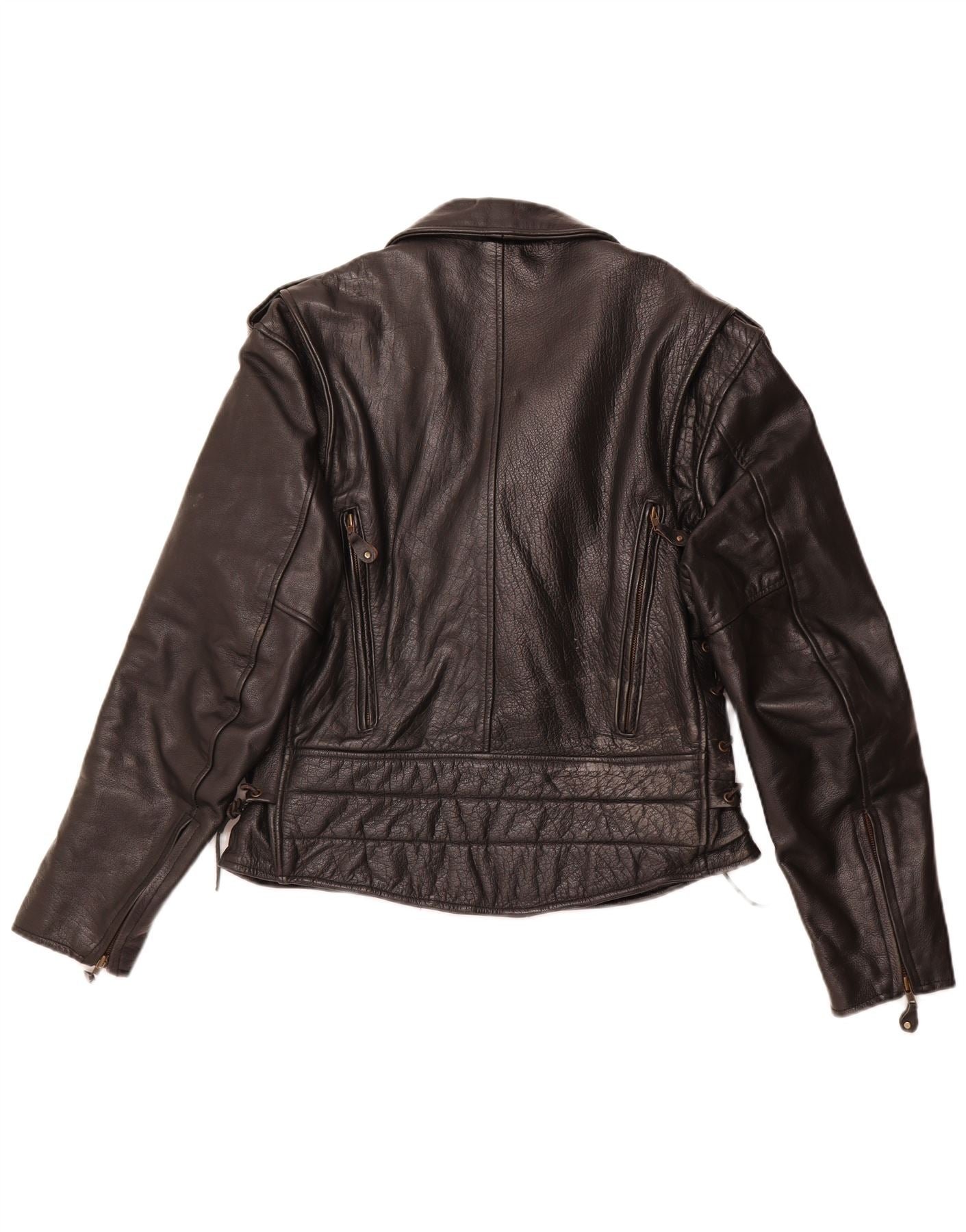 VINTAGE Herre Læder Biker Jacket UK 36 Lille Sort