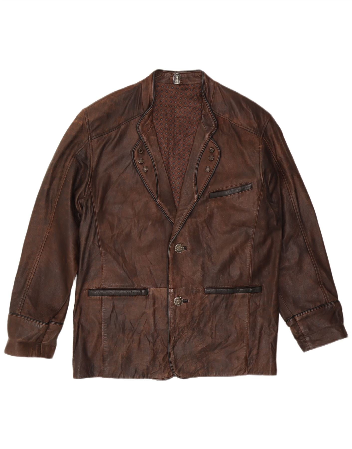 VINTAGE Herre Læderjakke IT 48 Medium Brun
