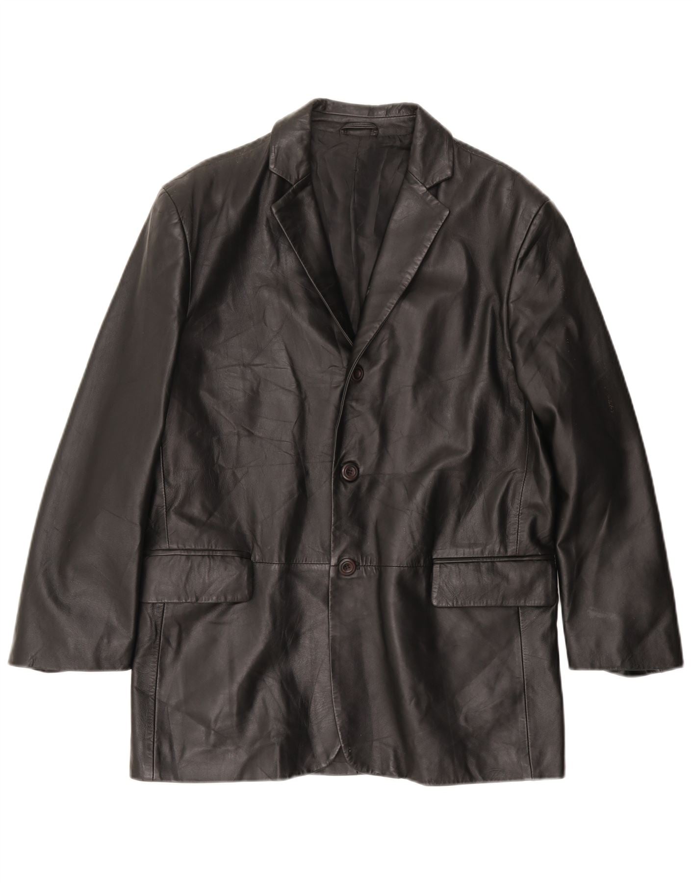 VINTAGE Herre Læderjakke IT 50 Stor Sort Læder