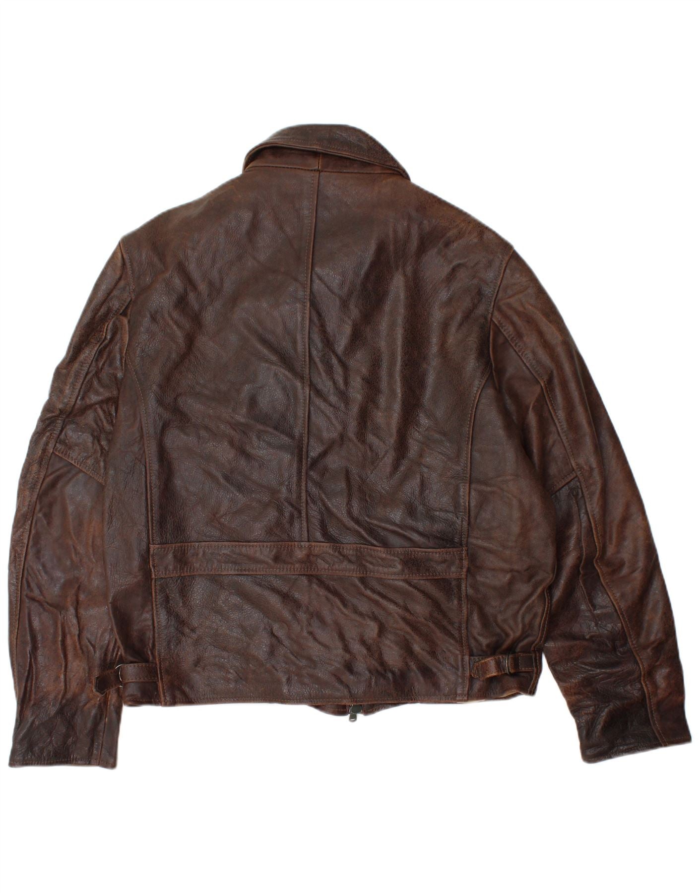 VINTAGE Herre Læderjakke IT 52 XL Brunt Læder