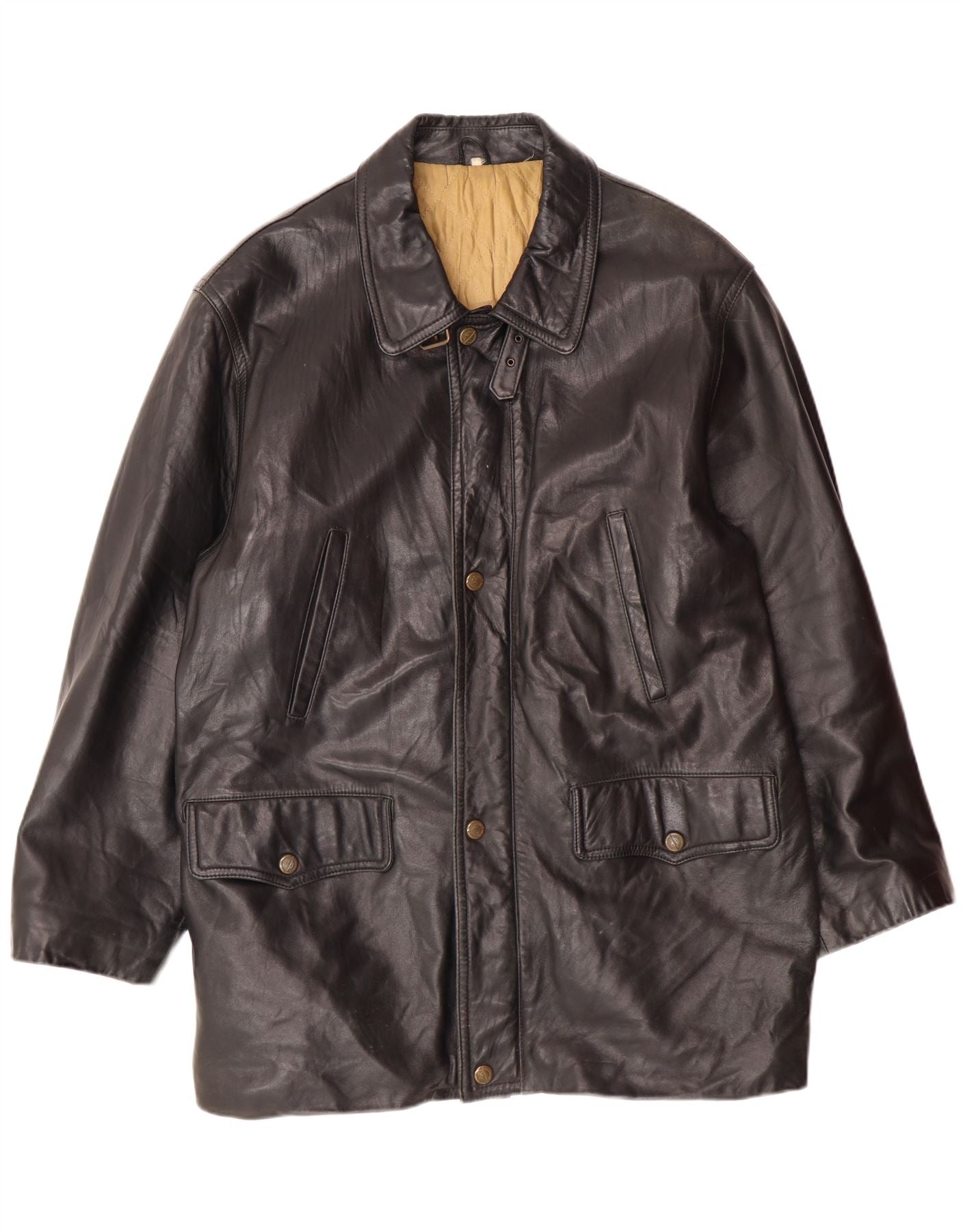VINTAGE Herre Læderjakke IT 54 2XL Sort Læder