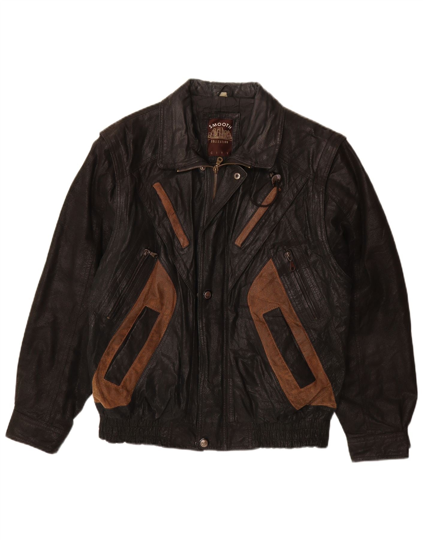 VINTAGE Herre læderjakke UK 40 Large Black Colourblock Læder