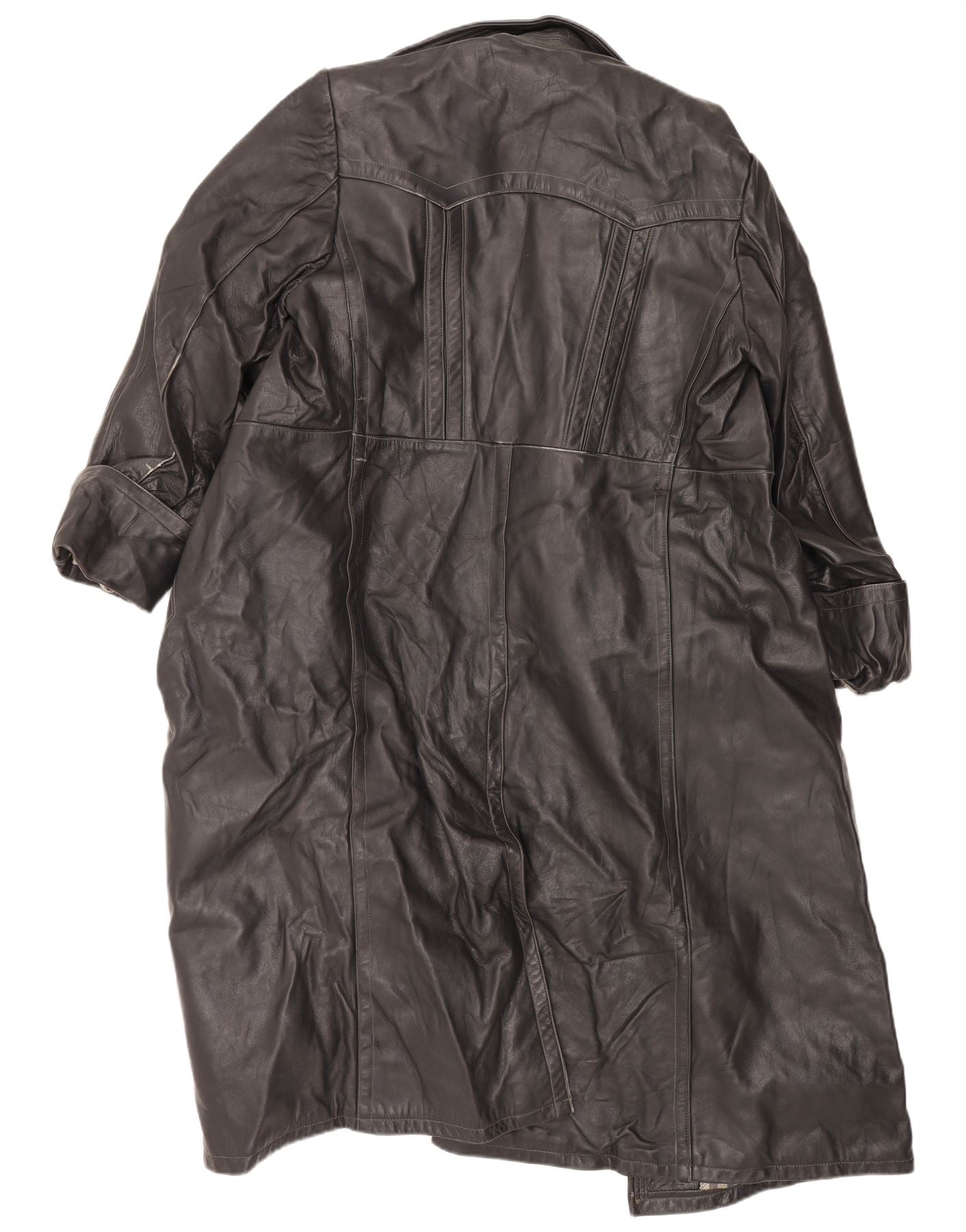VINTAGE Herre Læder Trench Coat UK 38 Medium Sort Læder