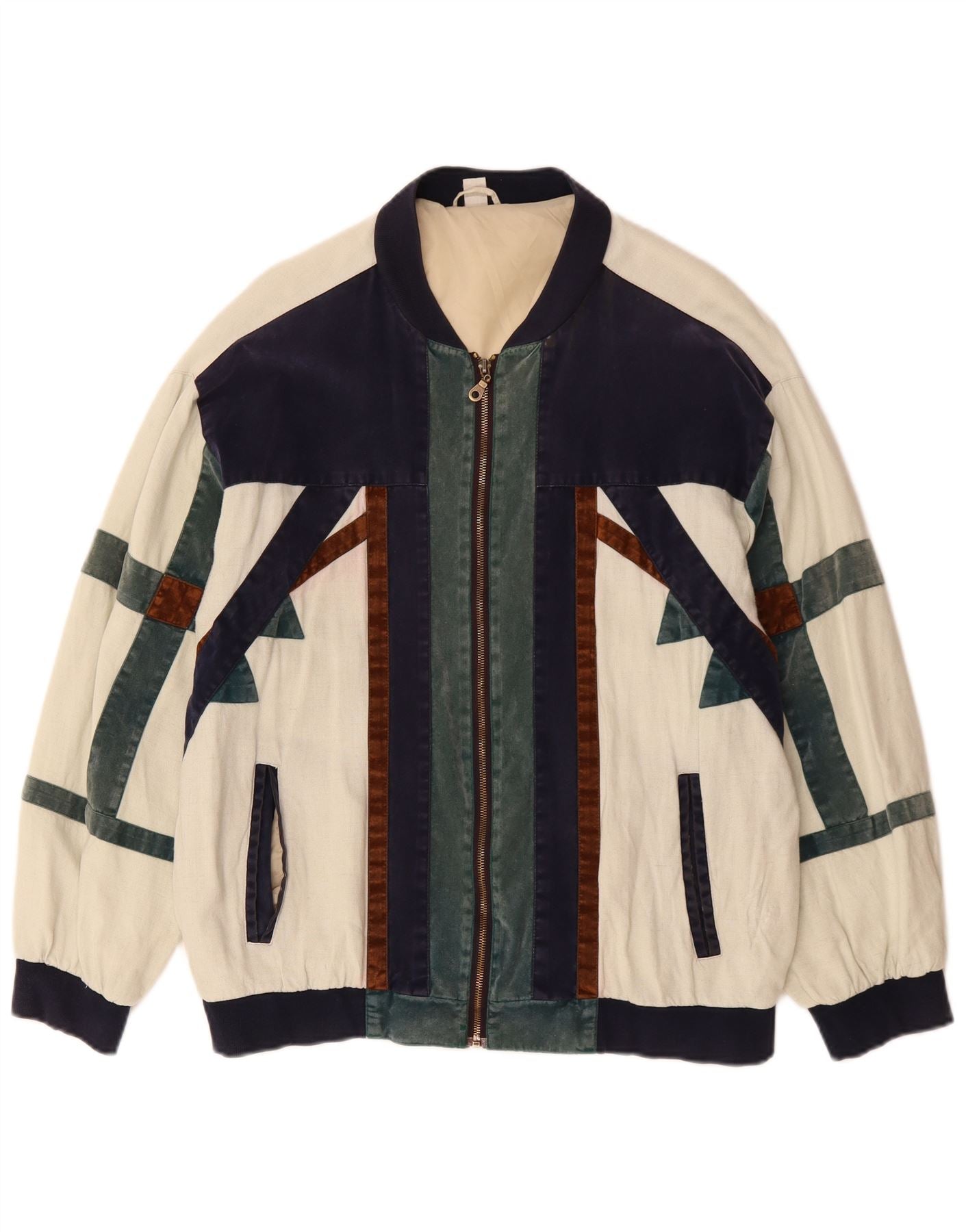VINTAGE Loose Fit Bomber Jacket UK 36 Small Off White Colourblock