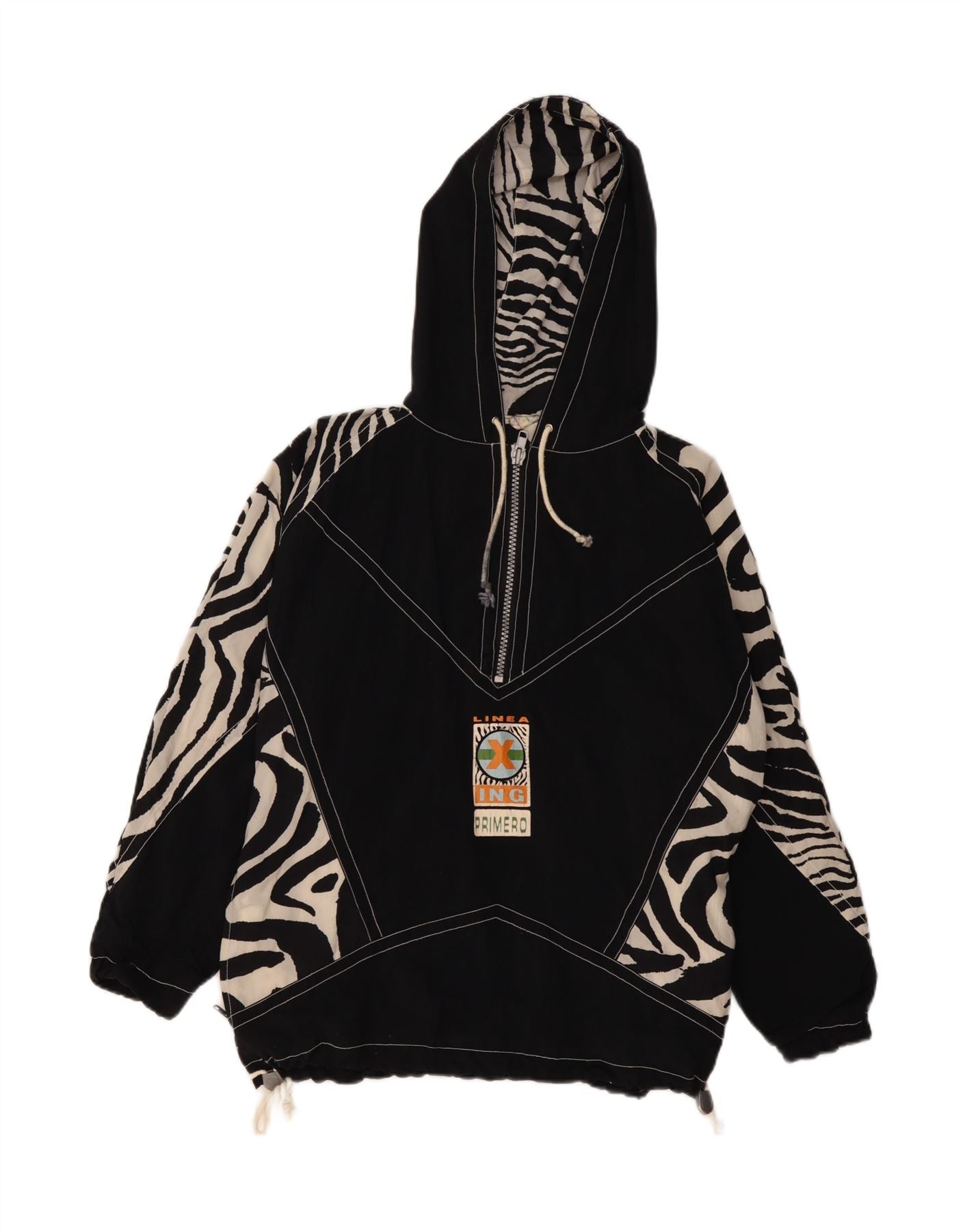 VINTAGE Herre Loose Fit Hætte Anorak Jacket UK 36 Small Black Animal Print