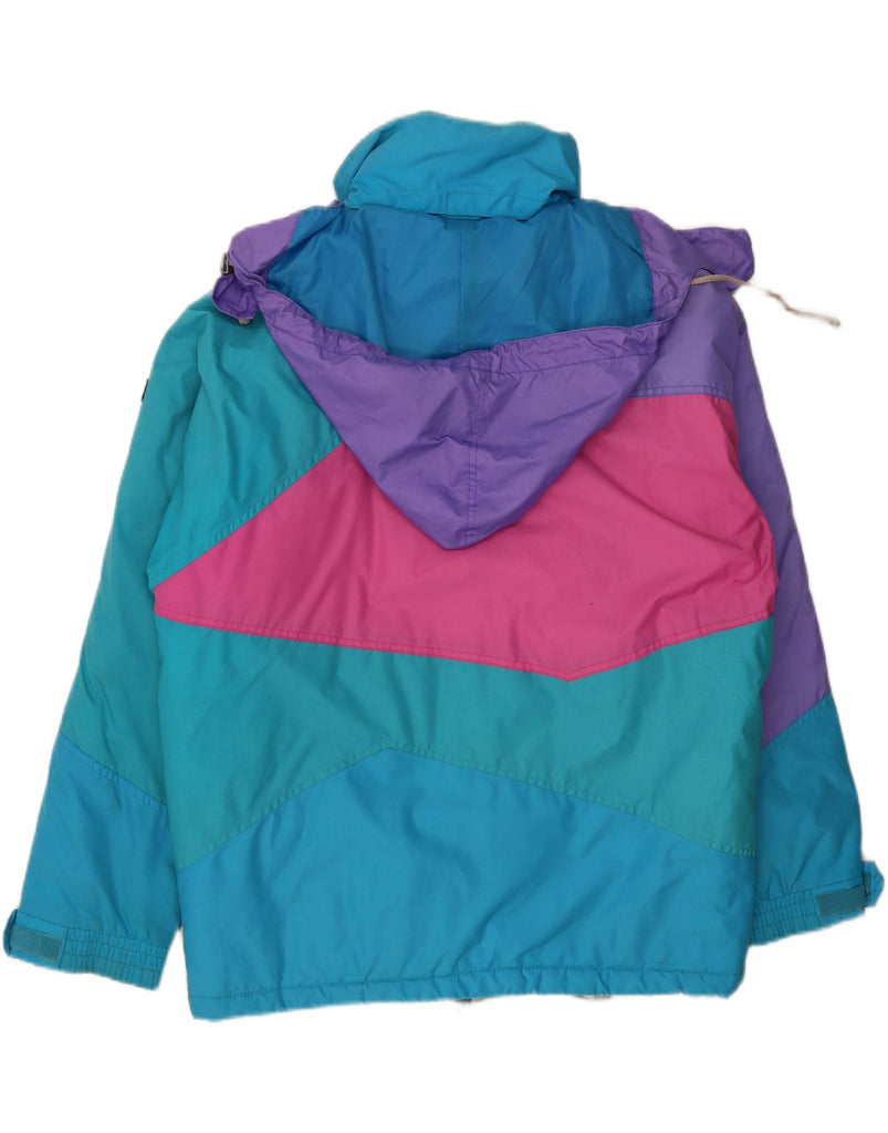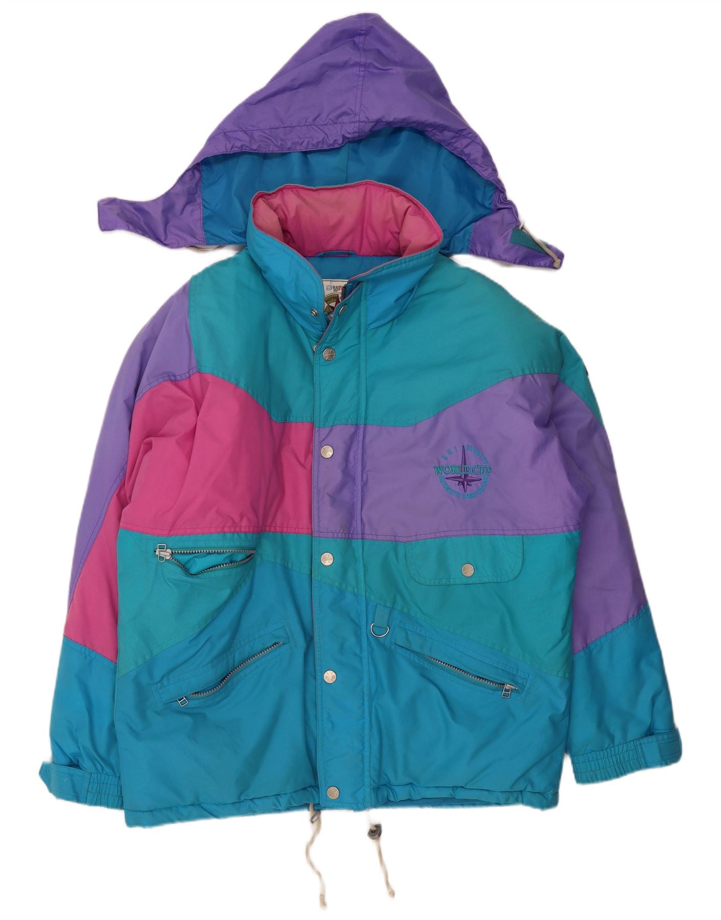 VINTAGE Herre Loose Fit Hætte Skijakke UK 38 Medium Blue Colourblock