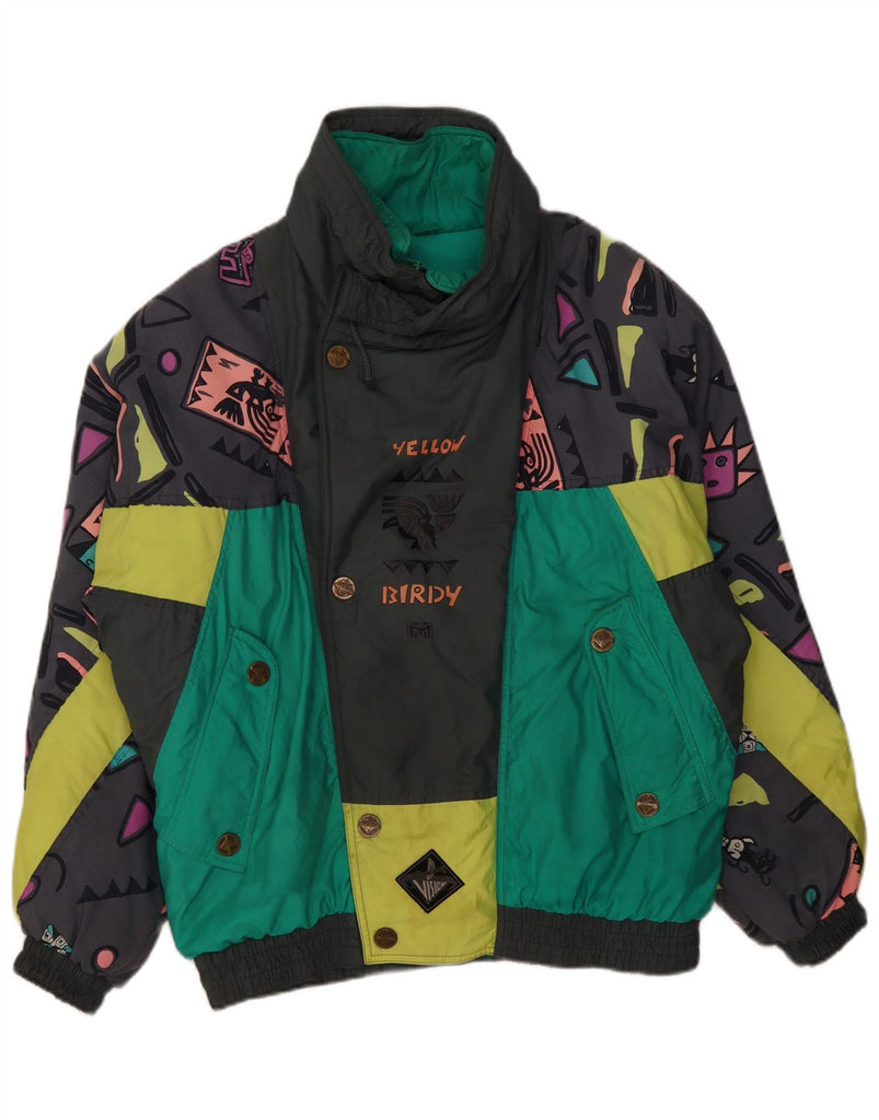 VINTAGE Herre Loose Fit Skijakke UK 40 Stor Flerfarvet Geometrisk