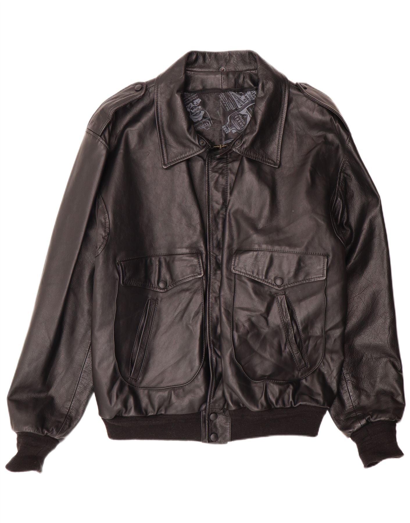 Vintage Herre Military Bomber Læderjakke UK 42 XL Sort