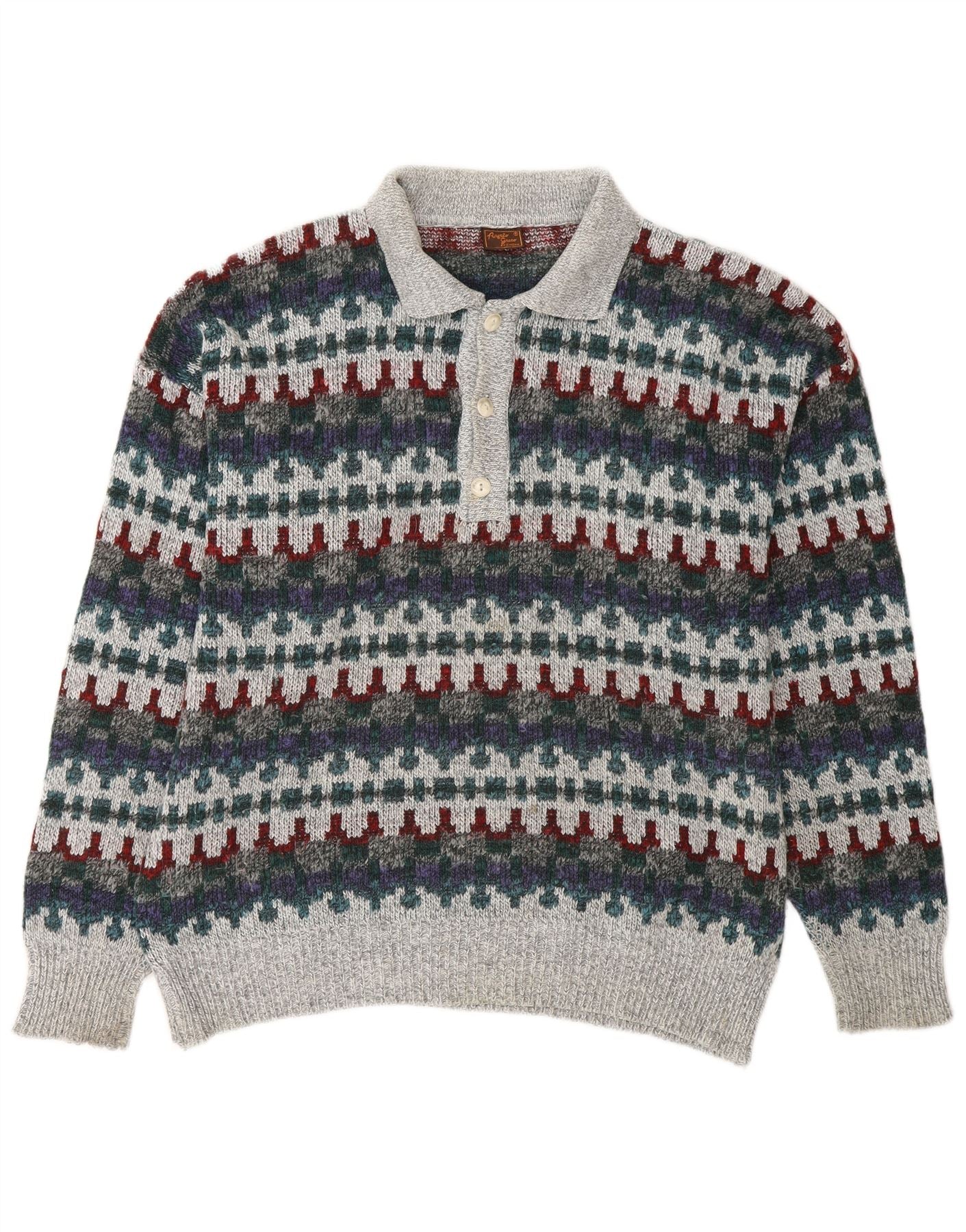 VINTAGE Herre Polo Neck Jumper Sweater IT 48 Medium Flerfarvet Fair Isle