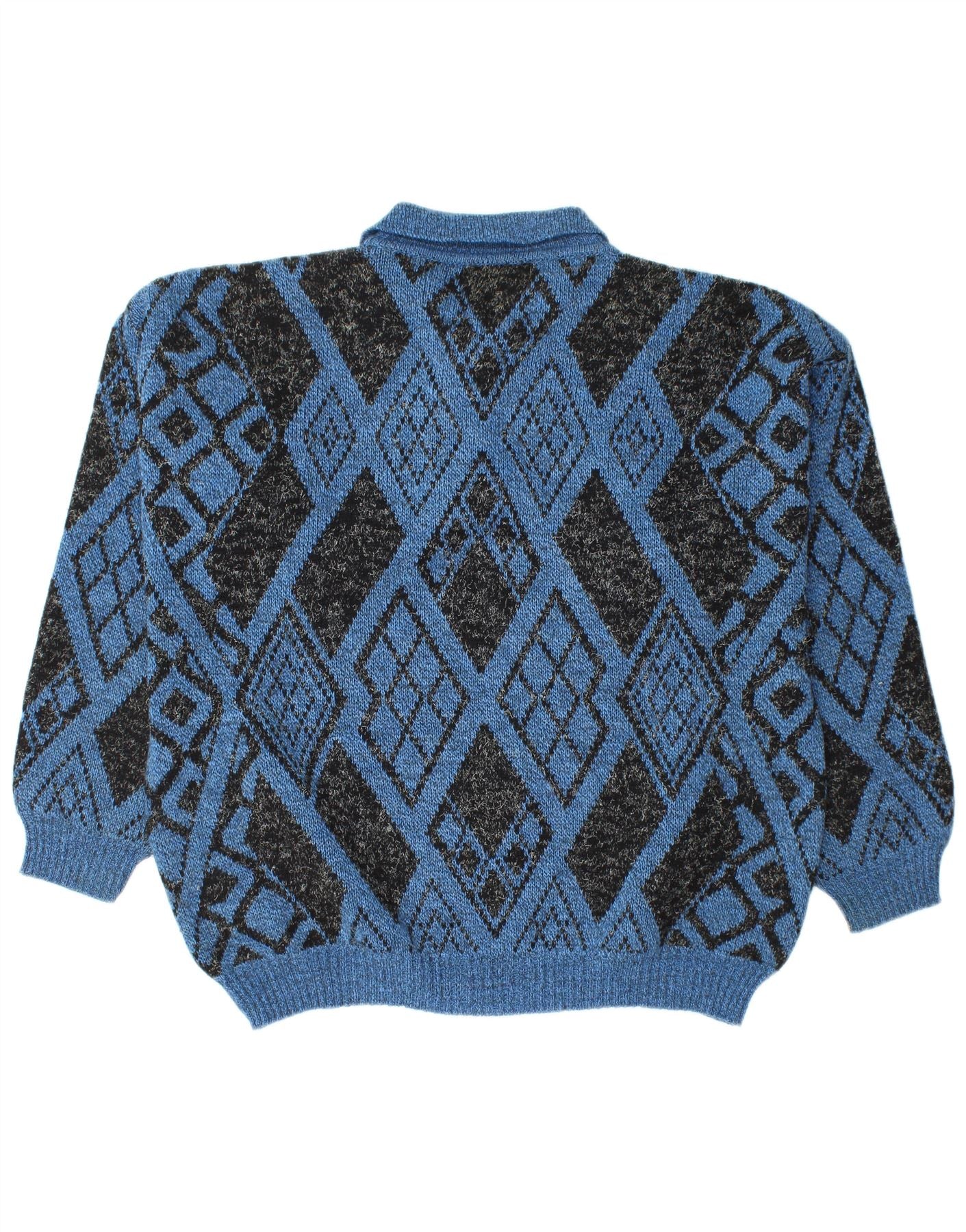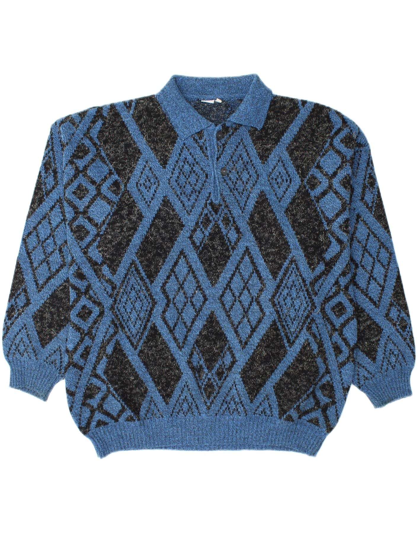 VINTAGE Polo-halstrøje til mænd Large Blue Argyle/Diamond