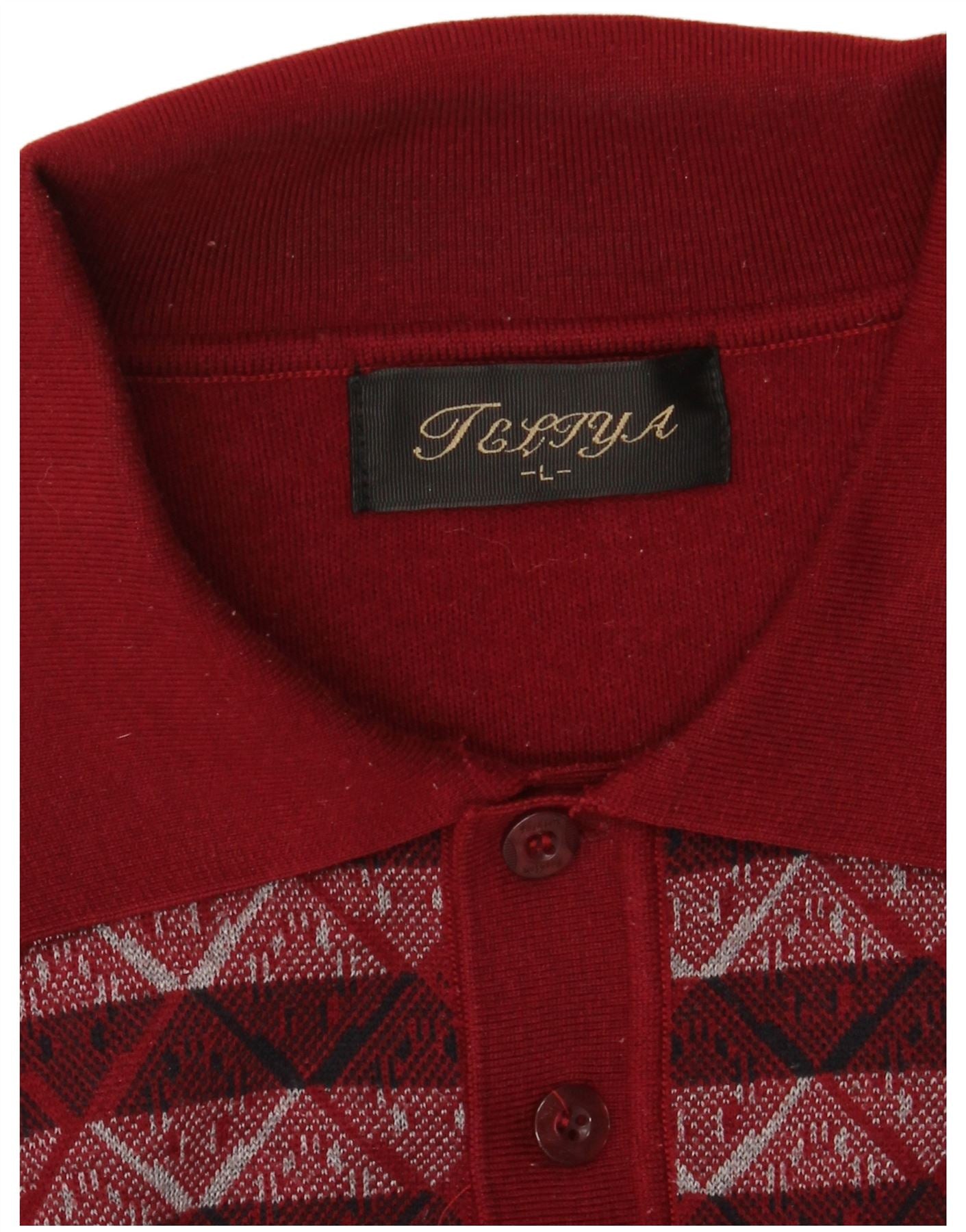 VINTAGE Herre Polo Neck Jumper Sweater Stor Bourgogne Geometrisk