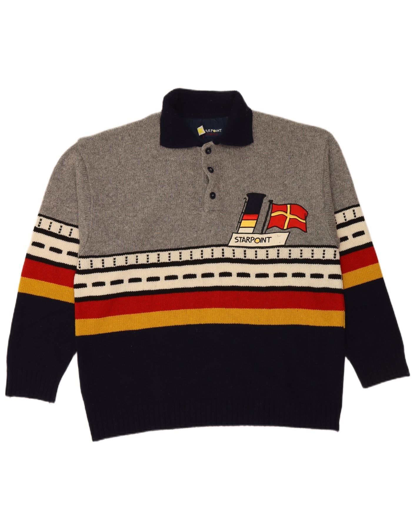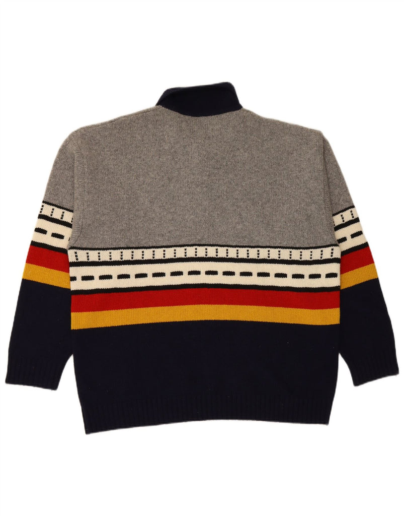 VINTAGE Mens Polo Neck Jumper Sweater XL Multicoloured Striped Wool