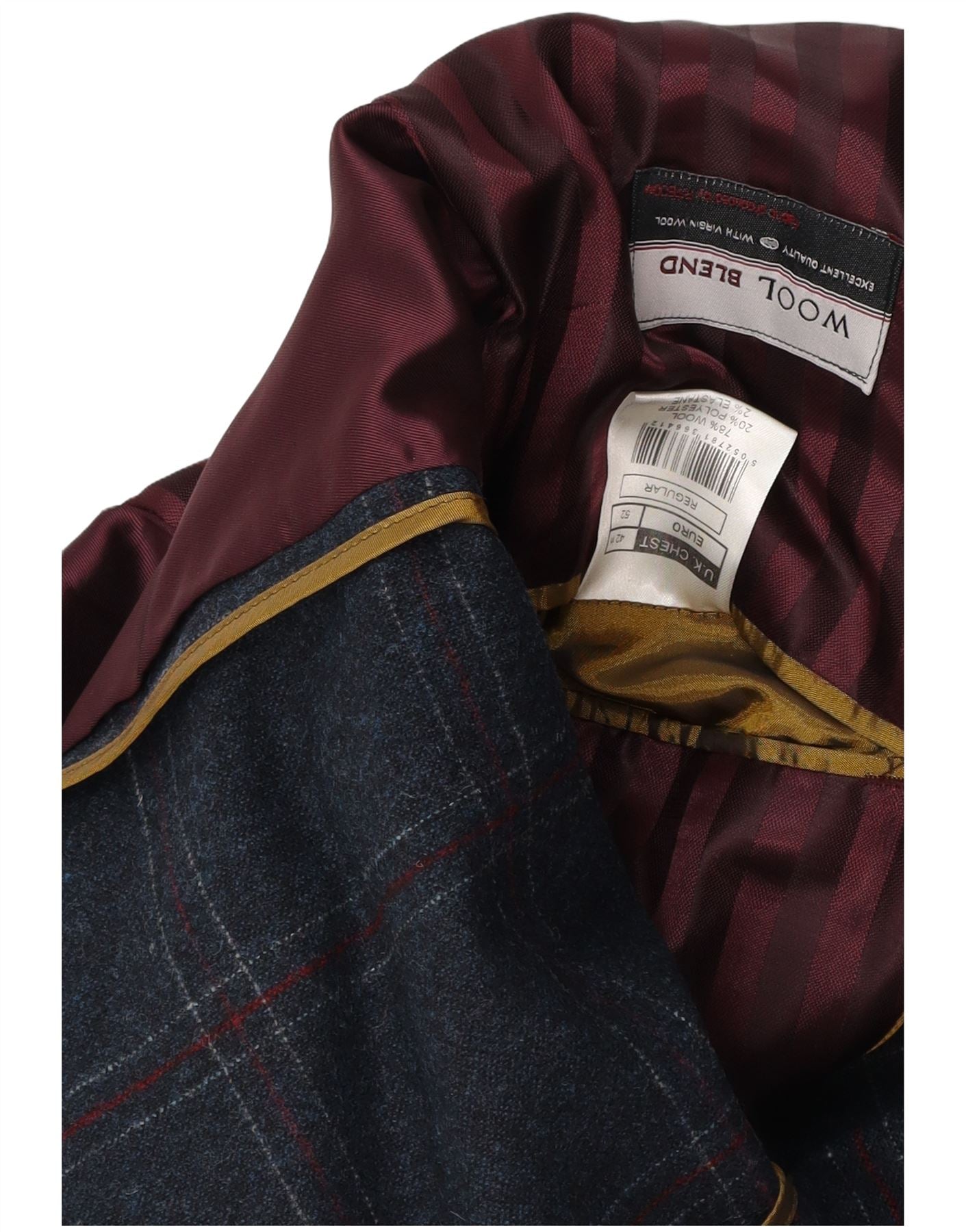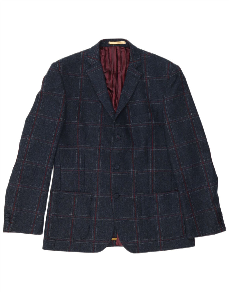 VINTAGE Herre Regular Fit 3-knaps blazerjakke UK 42 XL Navy Blue Check