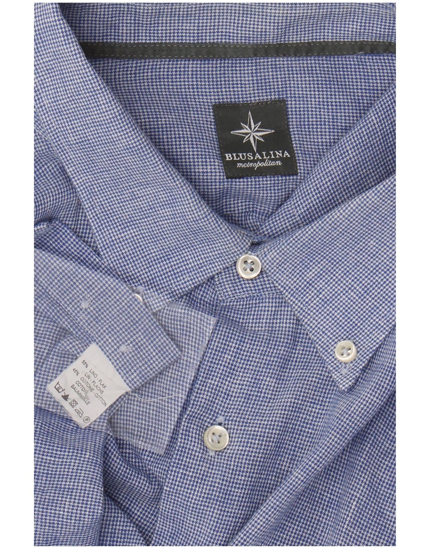 VINTAGE Herre Regular Fit skjorte 3XL Blå Houndstooth Linned
