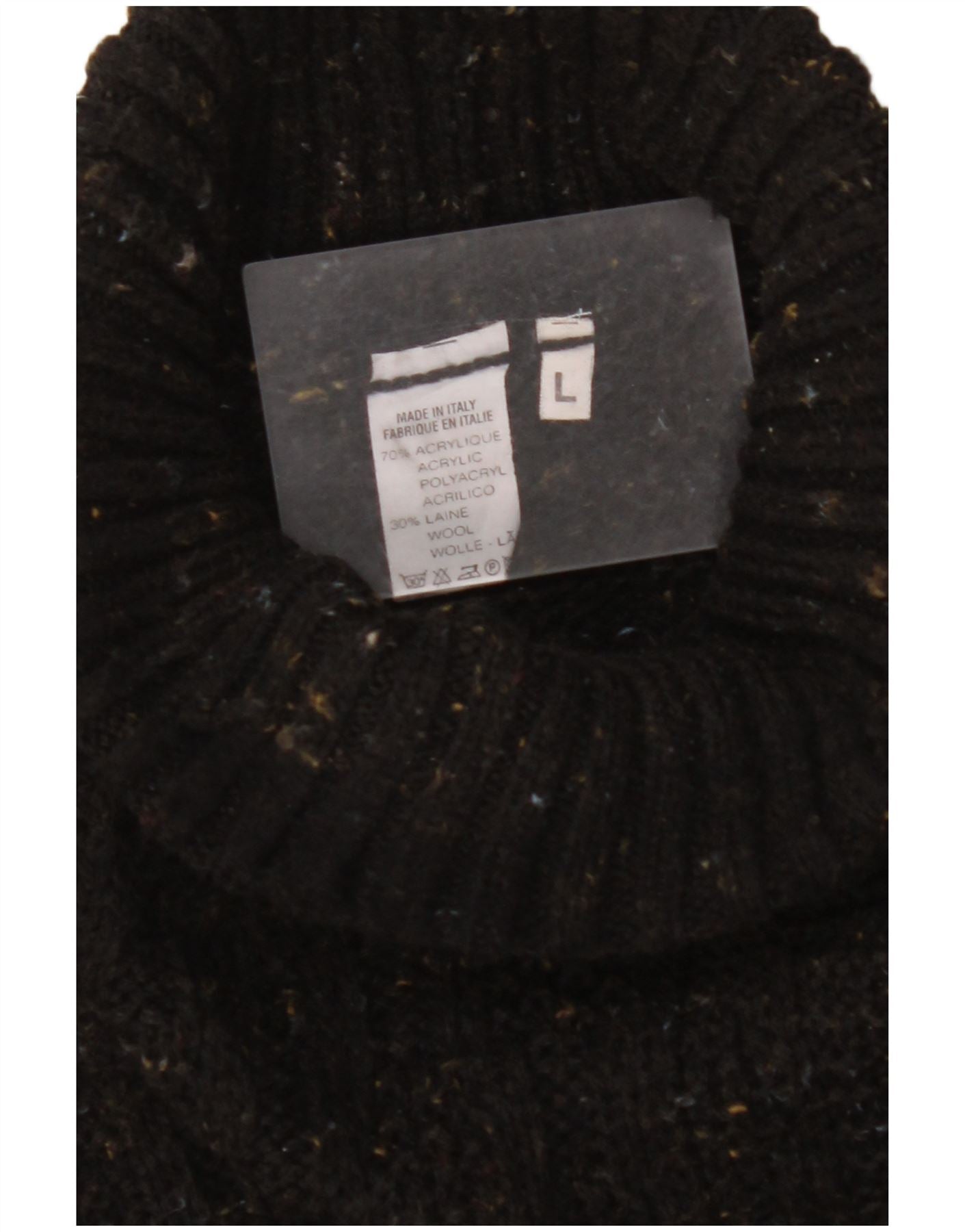 VINTAGE Herre Rullehalstrøje Sweater Stor Sort Flecked Akryl