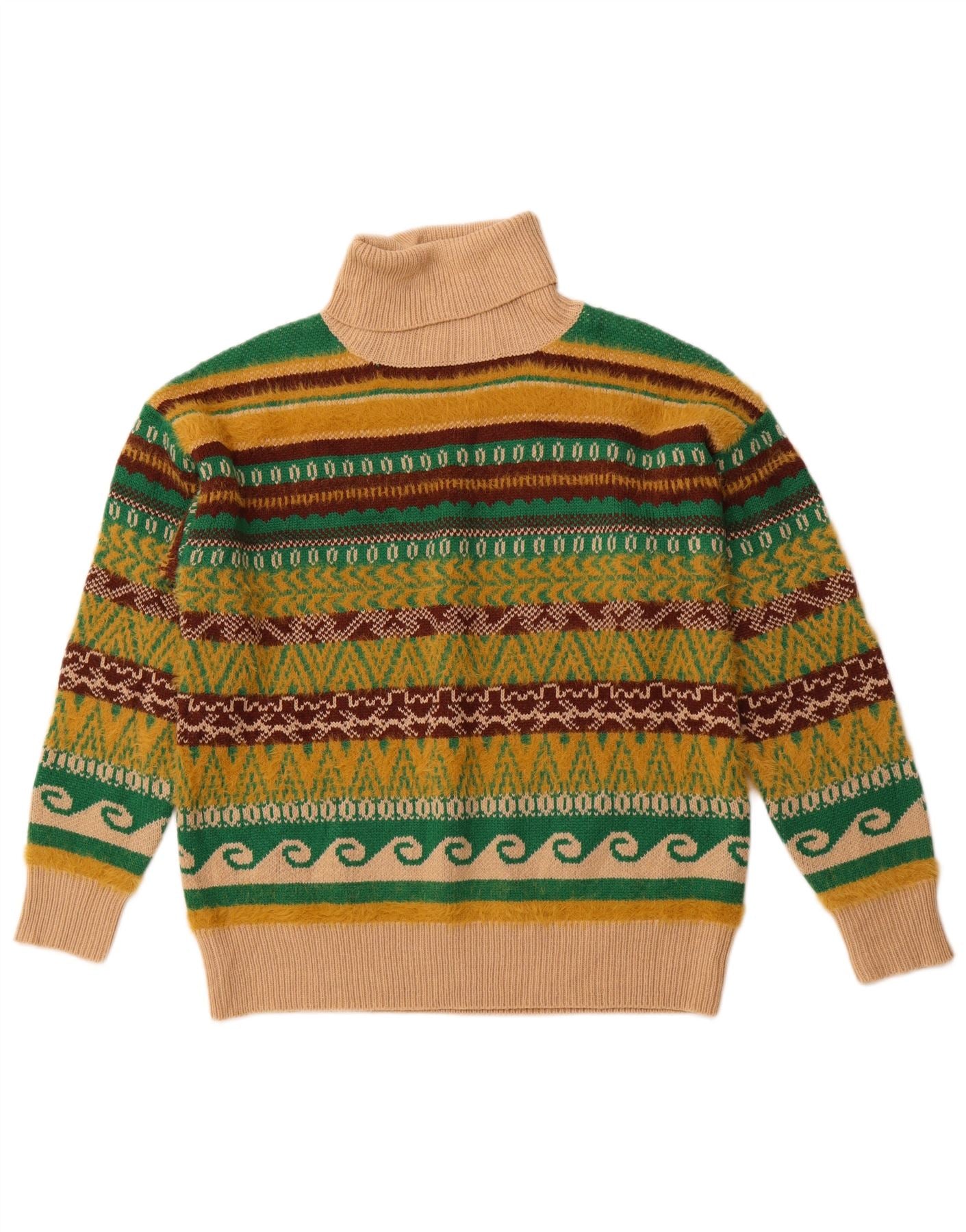 VINTAGE Herre rullehals sweater Stor flerfarvet Fair Isle