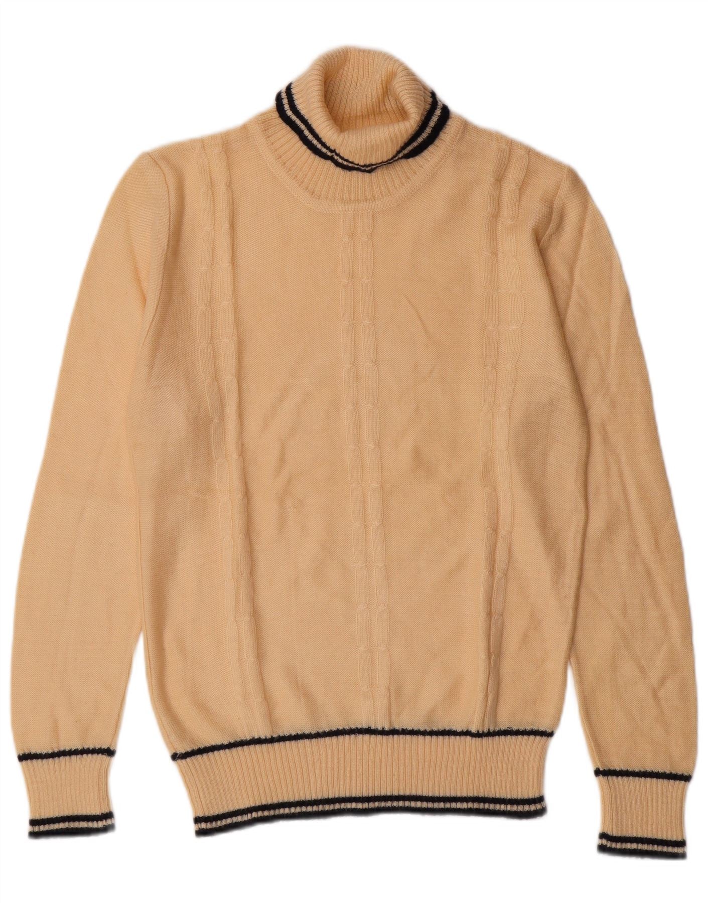 VINTAGE Herre rullehals sweater lille beige stribet klassisk