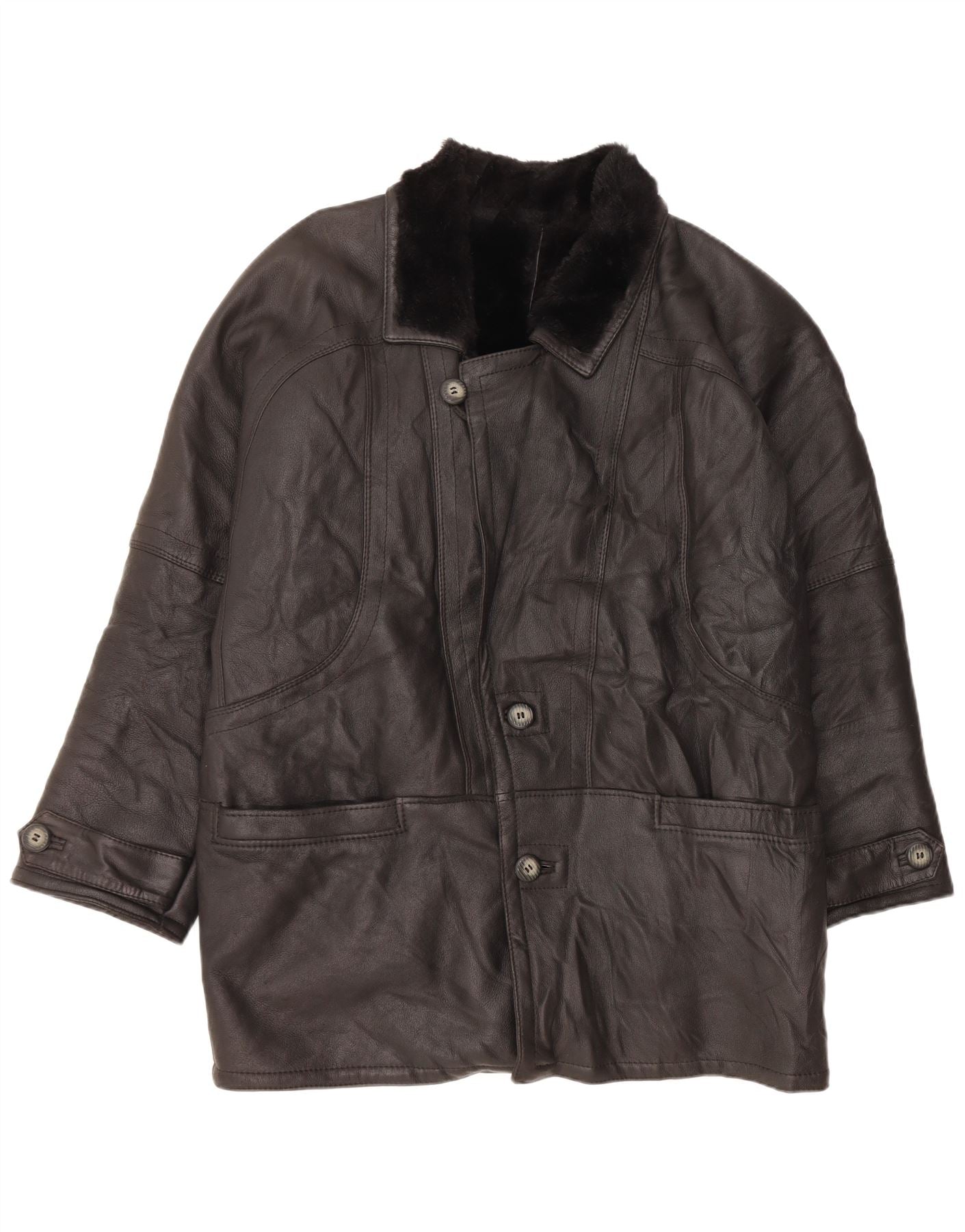 VINTAGE Herre Shearling Overfrakke IT 52 XL Sort Shearling