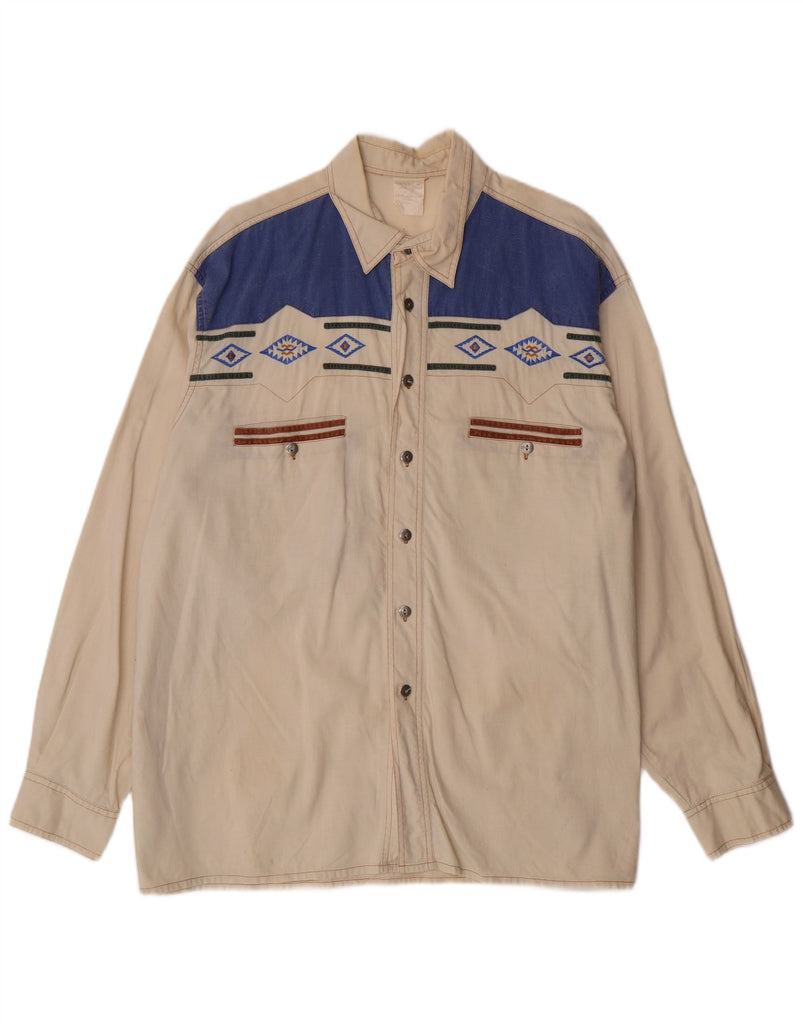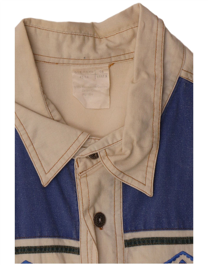 VINTAGE Mens Shirt Size 17 1/2 43/44 XL Off White Geometric Cotton