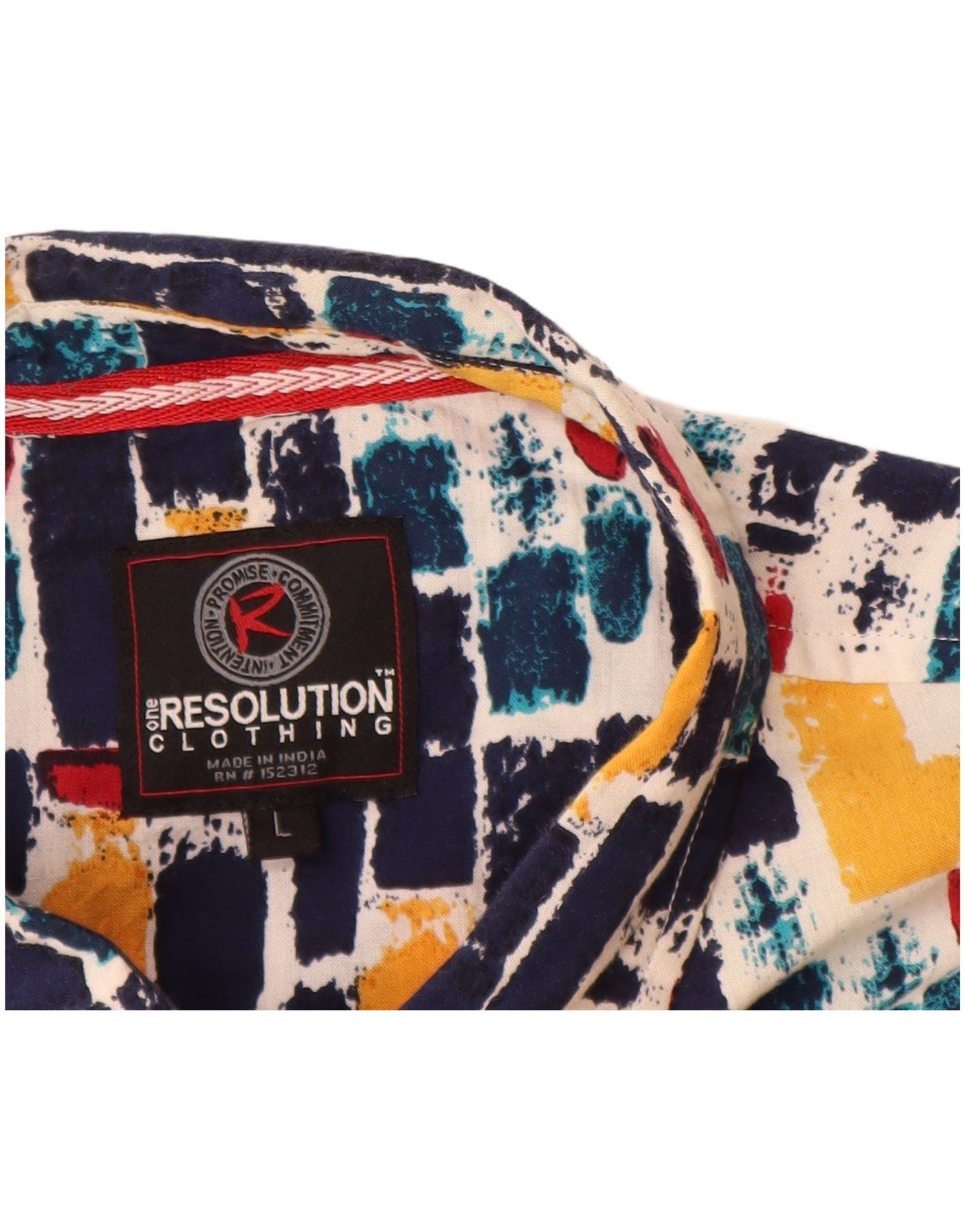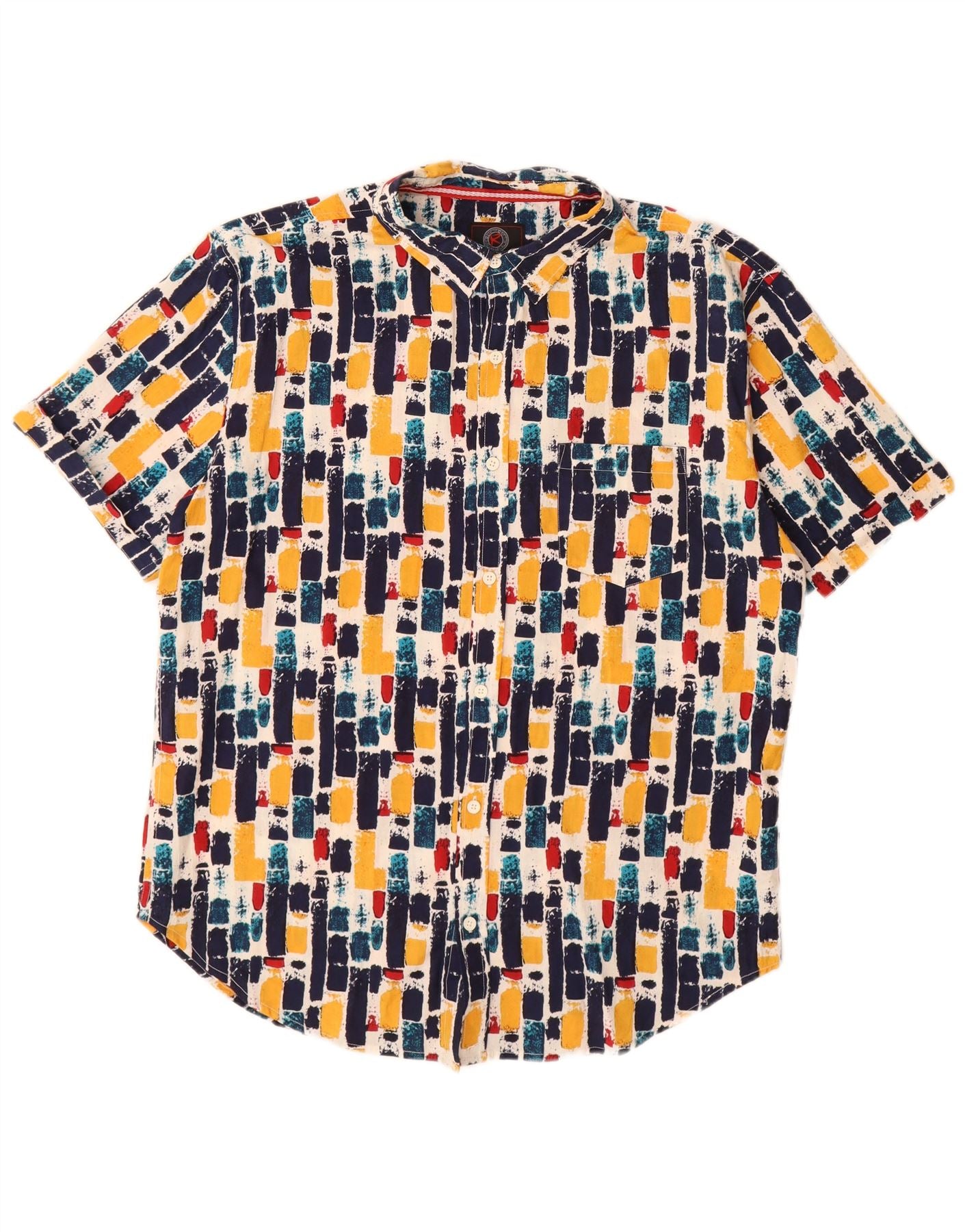 VINTAGE kortærmet herreskjorte Stor flerfarvet geometrisk bomuld