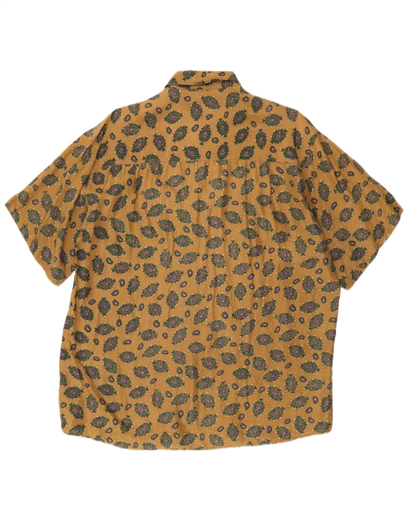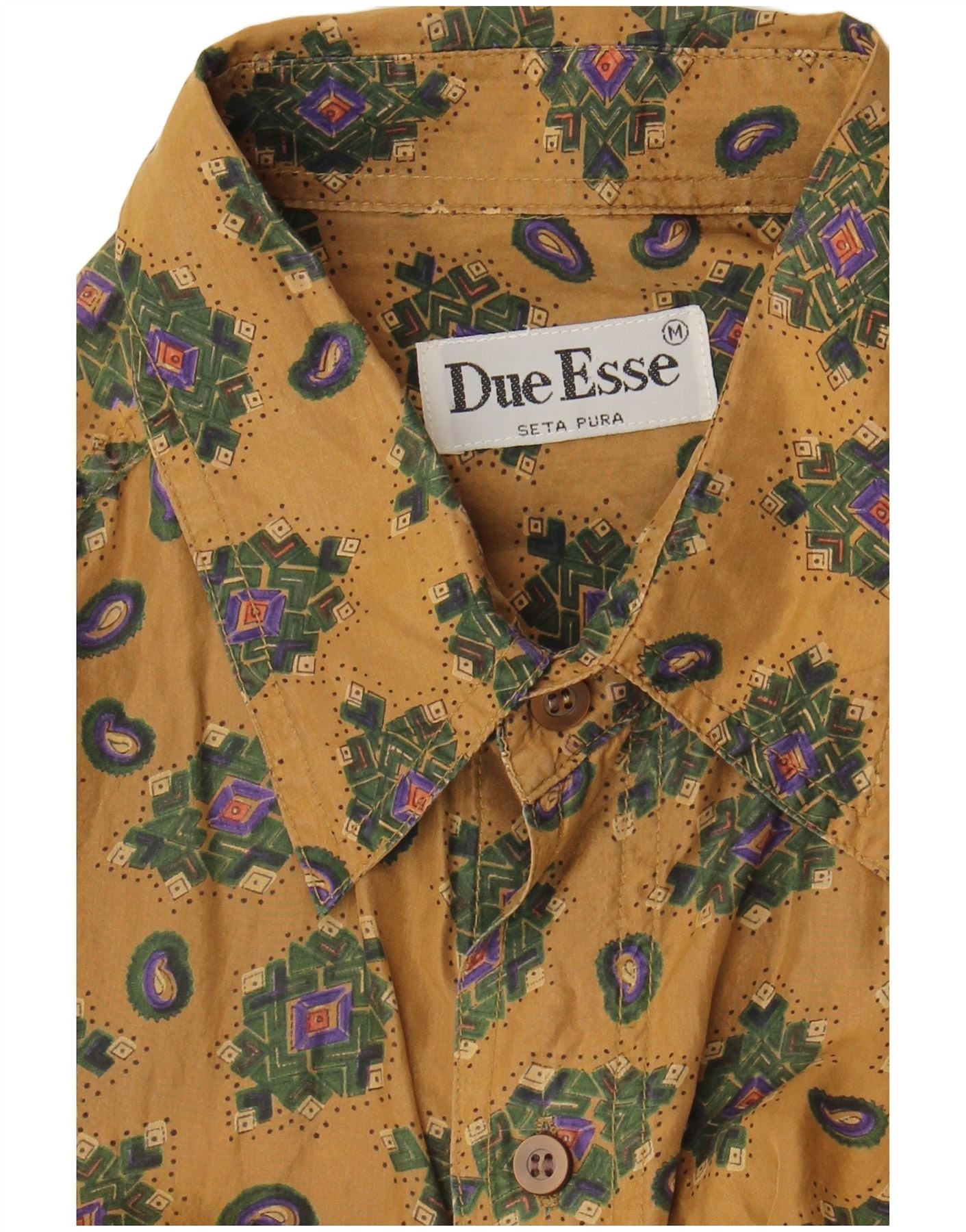 Vintage Kortærmet Herreskjorte Medium Beige Geometrisk Silke