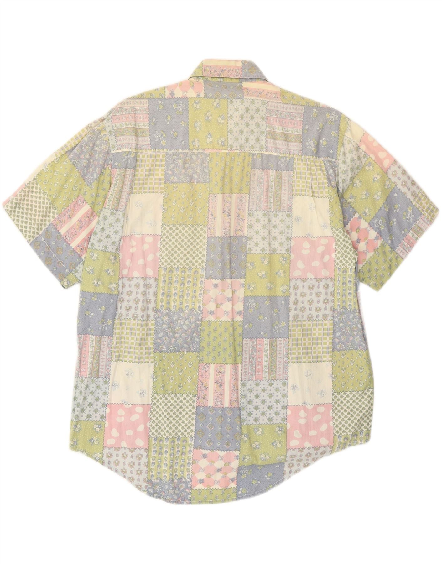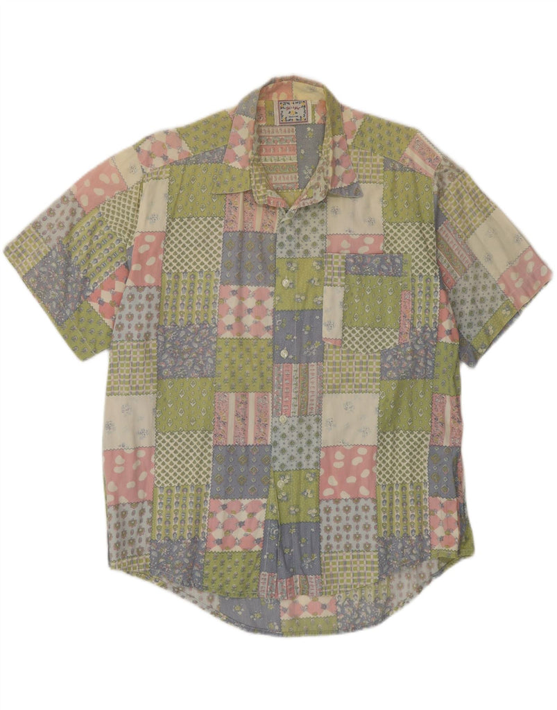 VINTAGE Kortærmet Herreskjorte Medium Flerfarvet Patchwork Bomuld