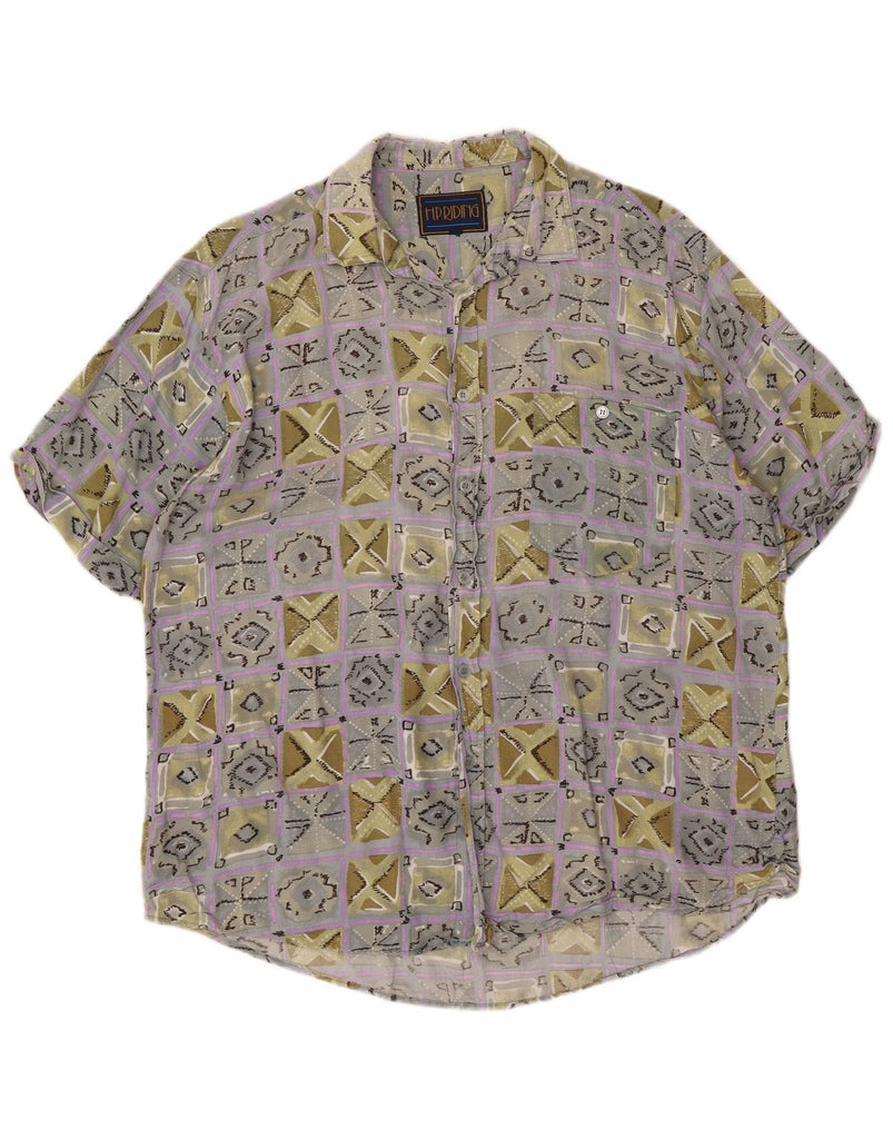 VINTAGE kortærmet herreskjorte XL Multifarvet geometrisk viskose
